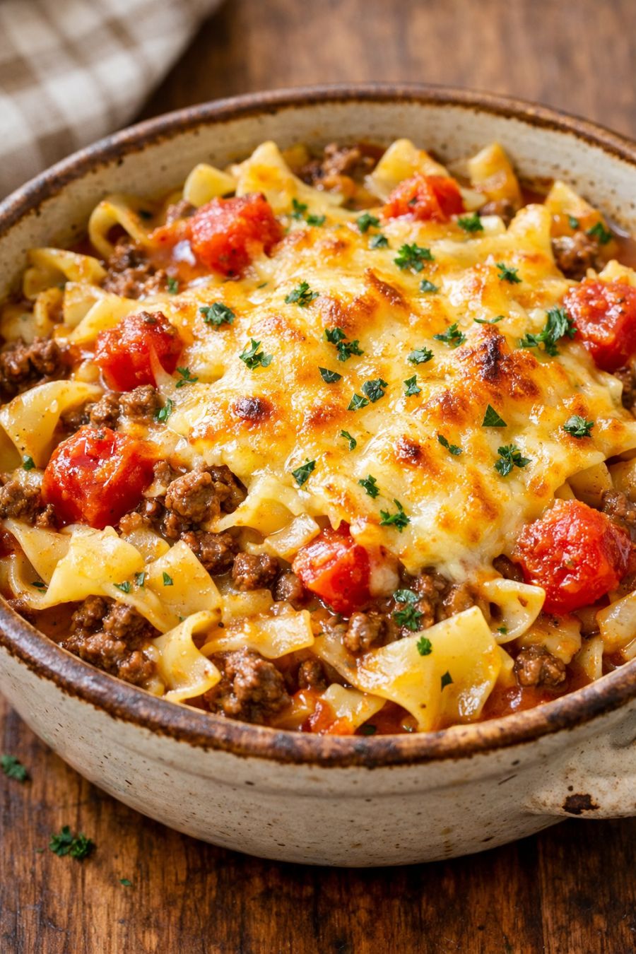 For a little extra garden flavor, you can add 1 teaspoon dried parsley or Italian seasoning to the tomato soup mixture before pouring it over the beef. If your family likes a bit of sweetness, stir 1 to 2 teaspoons of brown sugar into the soup to mimic old-fashioned tomato casseroles. You can swap the cheddar for Colby Jack or mozzarella, or use a blend to clean out the cheese drawer. Ground turkey or venison can stand in for the beef; just make sure you use a lean grind so the casserole doesn’t get greasy. To stretch the meal, add an extra cup of egg noodles and a splash more water, knowing it will be a bit thicker and more like a hearty hotdish. If you prefer a firmer casserole, let it sit on WARM for 15 to 20 minutes before serving so it sets up a bit. Leftovers reheat nicely in the microwave the next day; if they seem dry, just stir in a spoonful of tomato soup or a dollop of sour cream before warming.