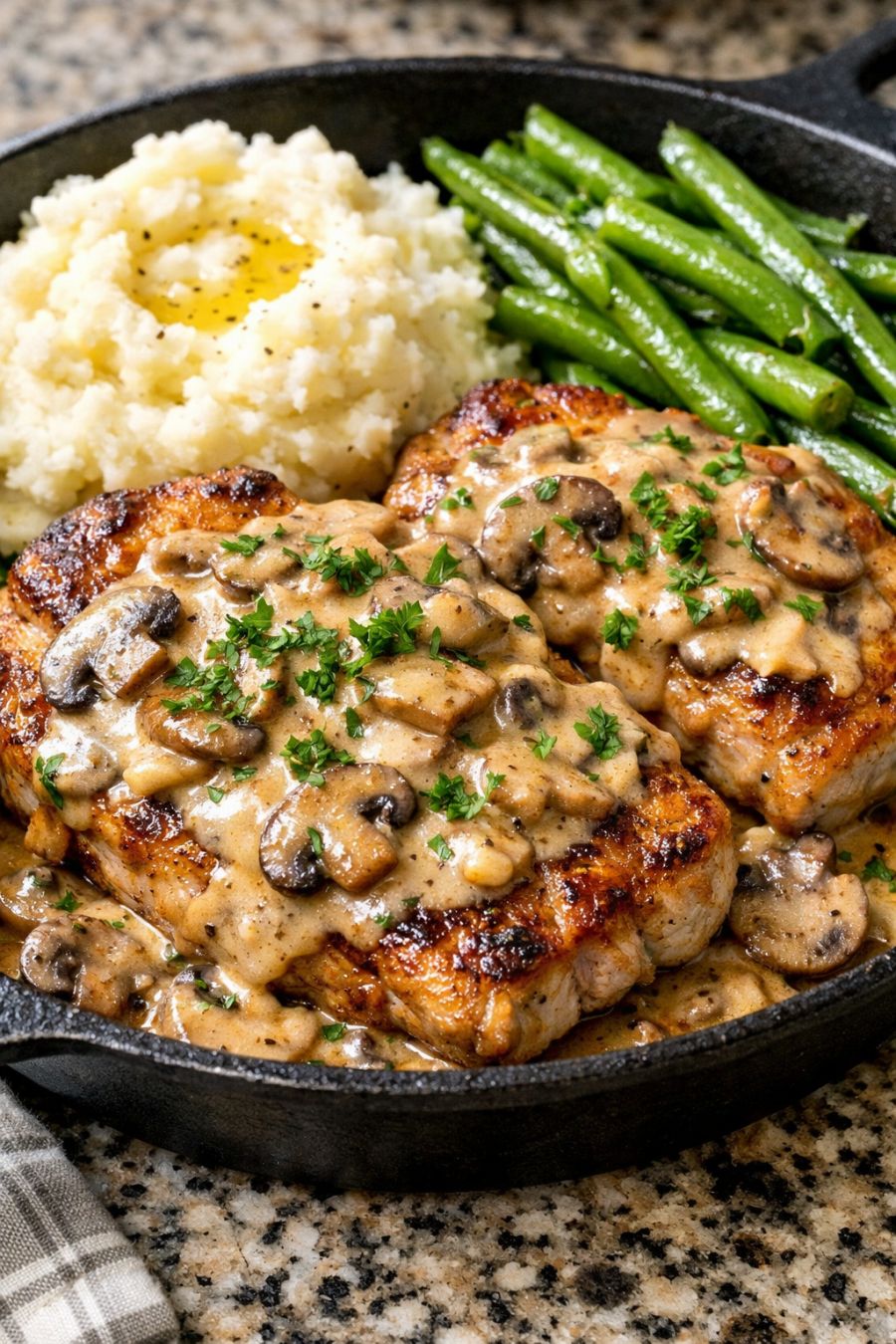 This is the kind of weeknight supper that reminds me of the way my mother cooked on the farm: simple, thrifty, and far more comforting than it looks in the pan. You take raw pork chops, lay them right in a skillet, then pour one creamy mixture—made from condensed cream of mushroom soup, a splash of milk, and a few pantry seasonings—over the top. It bubbles away on the stove until the chops are tender and the sauce is thick and savory. This style of smothered pork chop is pure Midwestern practicality: one pan, familiar ingredients, and a cozy gravy that begs for something starchy on the side to soak it up.