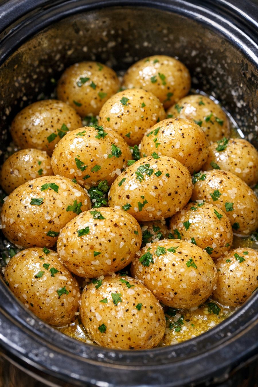 For picky eaters, keep the seasonings simple as written and let everyone add their own toppings at the table—shredded cheddar, a dollop of sour cream, or a sprinkle of bacon bits can turn these into loaded buttered potatoes. If your family likes herbs, stir in 1 to 2 tablespoons of chopped fresh parsley or chives right before serving for a pop of color and freshness. To make it vegetarian, use vegetable broth instead of chicken broth. For a richer, creamier version, add 1/4 cup of heavy cream during the last 30 minutes of cooking and gently stir. If you prefer a lighter dish, cut the butter down to 6 tablespoons and add an extra splash of broth. You can also swap in small red or gold potatoes if that’s what you have on hand—just keep them bite-sized. If you’re cooking for a crowd, this recipe doubles easily in a larger slow cooker; just add an extra 30 minutes or so to the cook time and check for tenderness. Leftovers can be smashed and pan-fried in a little butter the next day for crispy breakfast potatoes.