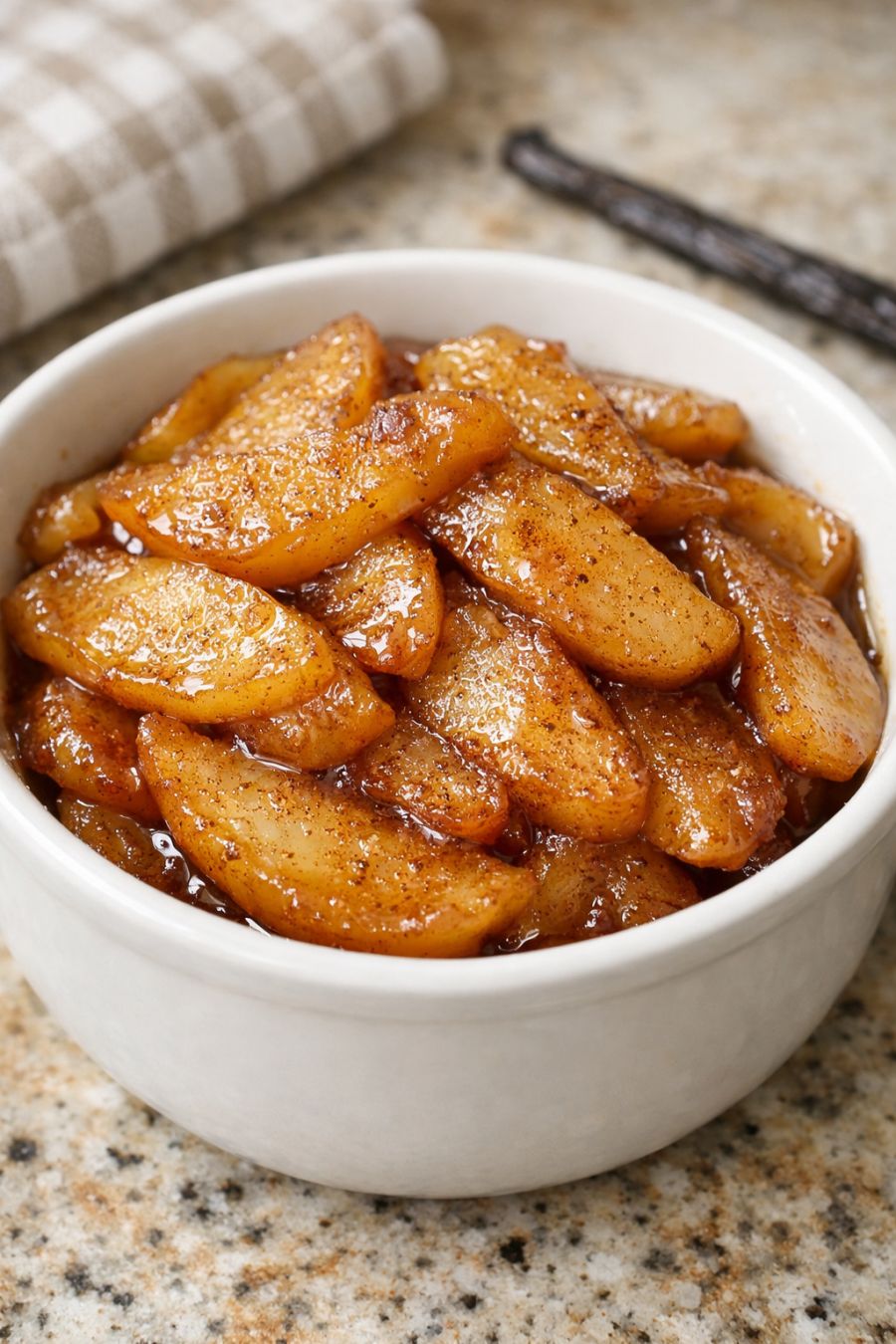 Use any firm baking apple you have on hand—Jonathan, Honeycrisp, Granny Smith, or a mix, like we used to with windfalls from different trees. If you prefer a deeper molasses note, swap half of the granulated sugar for brown sugar. For a slightly saucier dish, add 2 to 3 tablespoons of water or apple cider before cooking; it will blend with the sugar into a richer syrup. For a more traditional Amish-style touch, you can replace half the butter with heavy cream poured over the apples in the last 30 minutes of cooking, which makes them extra silky. Add a pinch of salt to brighten the flavors, or a splash of vanilla at the end for a bakery-style aroma. To keep things lighter, reduce the sugar to 1/3 cup, especially if your apples are very sweet. Leftovers reheat nicely in a saucepan over low heat and can be tucked into pie crust, spooned over pancakes, or folded into oatmeal for breakfast the next morning.