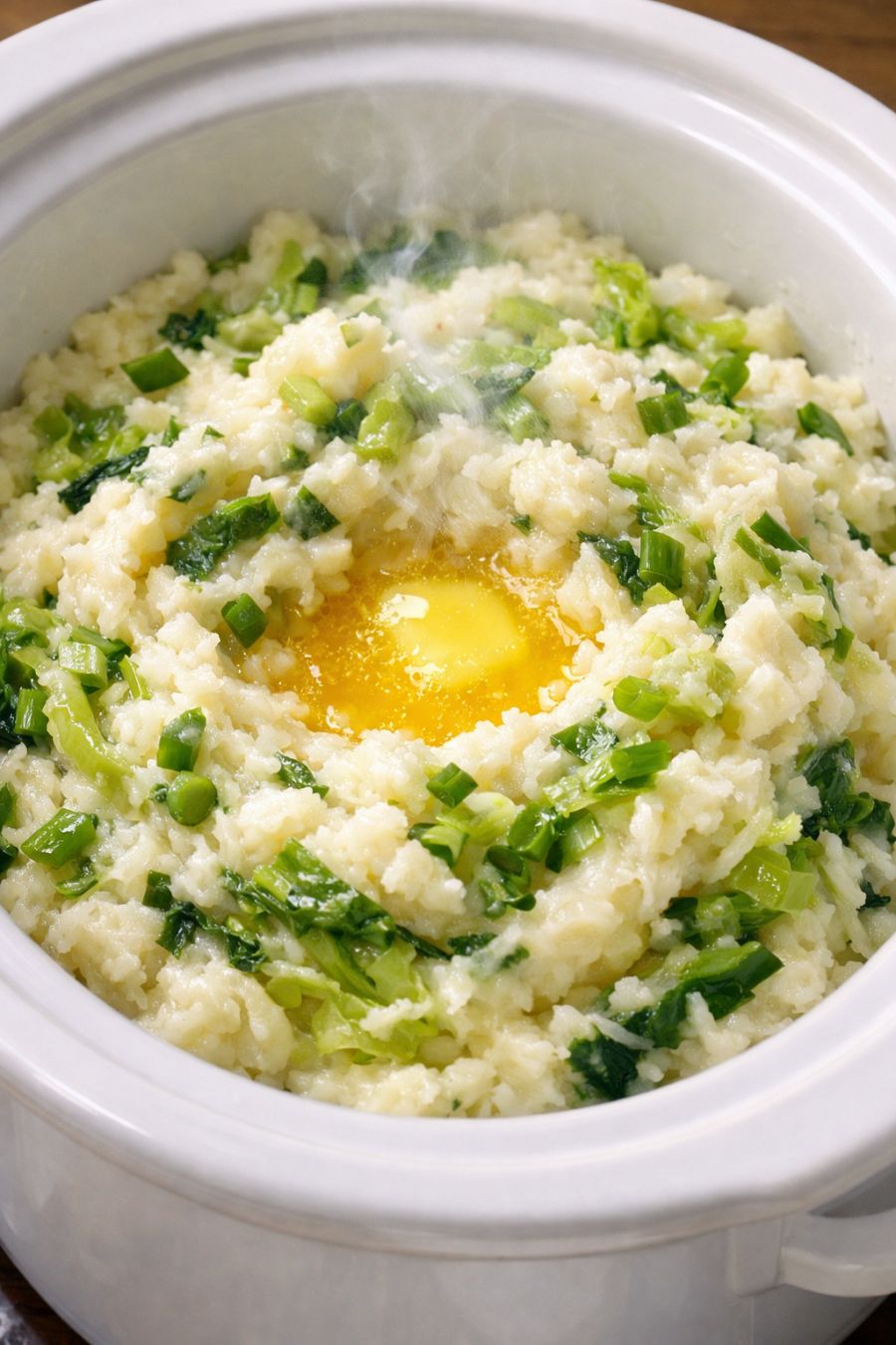 Serve the colcannon straight from the slow cooker, topped with the reserved scallions. Keep it on the WARM setting for up to 2 hours for gatherings, stirring occasionally so the buttery center gets swirled into each serving.
