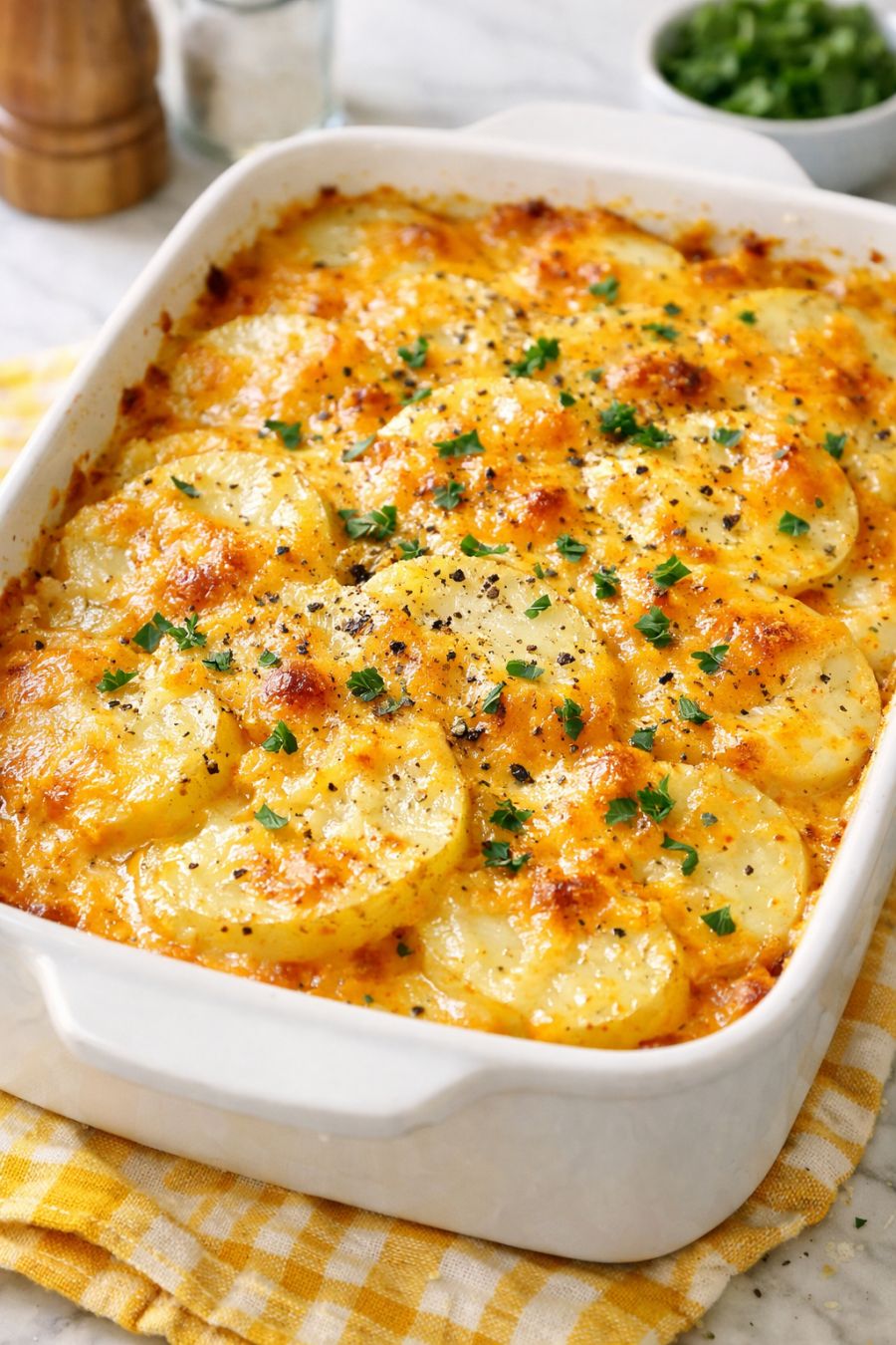 Preheat your oven to 350°F (175°C). Lightly grease a 2- to 2 1/2-quart casserole dish with soft butter or nonstick spray so the potatoes don’t stick.