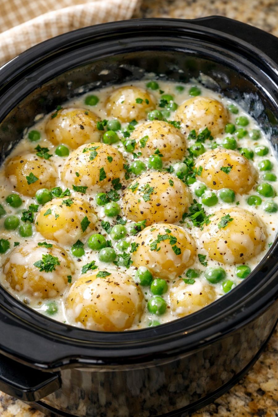 Slow Cooker Amish Creamed Peas and Baby Potatoes