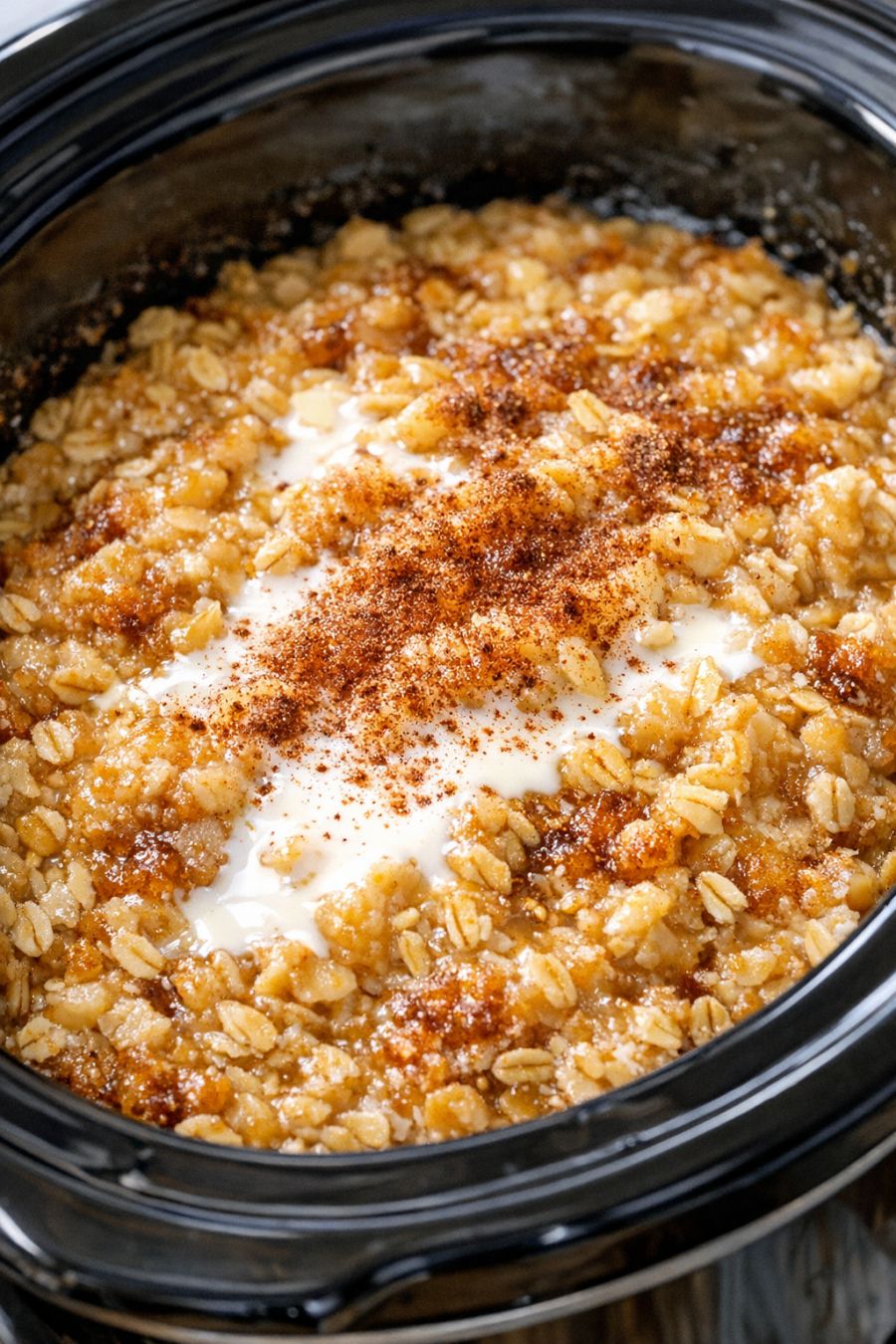 For a slightly less sweet version, reduce the brown sugar to 3/4 cup; you can always drizzle a little maple syrup or honey over individual servings. If you prefer a firmer, more sliceable texture, cook closer to 4 hours and let it cool longer before serving. To make it feel more like a breakfast, stir in 1/2 teaspoon of cinnamon and a pinch of salt with the oats before adding to the slow cooker, then top bowls with fruit and yogurt. For extra richness, swap 1 cup of the whole milk for heavy cream or half-and-half. You can also prep this the night before: whisk everything together except the brown sugar, refrigerate the oat mixture in a covered bowl, then in the morning pour it into the slow cooker, stir in the brown sugar as directed, and cook while you get ready for the day. If you need to stretch the recipe for a crowd, it doubles well in a larger slow cooker—just add 30 to 60 minutes to the cook time and keep an eye on the center for doneness.