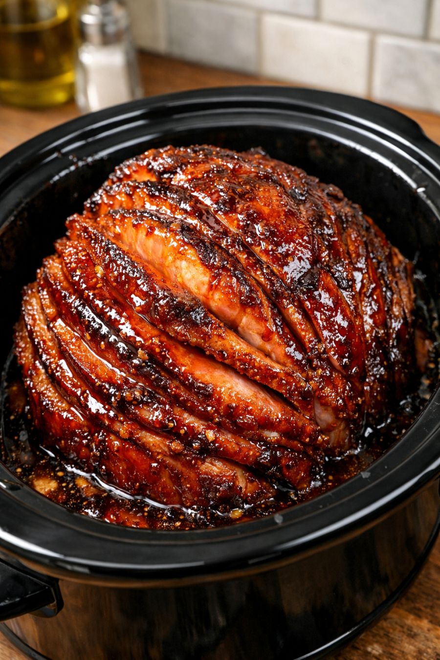 If you like a bit more savory depth, you can add 1–2 tablespoons of Dijon or yellow mustard mixed into the brown sugar before patting it onto the ham—this keeps the ingredient list simple but adds a little tang. For a slightly different flavor, try using cherry cola or vanilla cola instead of regular cola; just avoid diet soda, which doesn’t caramelize the same way. If your ham is on the smaller side (5–6 pounds), start checking for doneness around 3 1/2–4 hours so it doesn’t dry out. For crispier edges, you can transfer the cooked ham to a baking dish and broil it for 3–5 minutes to caramelize the sugar on top—just watch closely so it doesn’t burn. Leftovers freeze well: portion sliced ham into freezer bags with a bit of the cooking liquid, squeeze out extra air, and freeze for up to 2–3 months for quick future meals. If you’re cooking for a smaller household, choose a half ham, follow the same method, and plan on using leftovers in sandwiches, breakfast hash, or soups throughout the week to stretch both your time and your grocery budget.