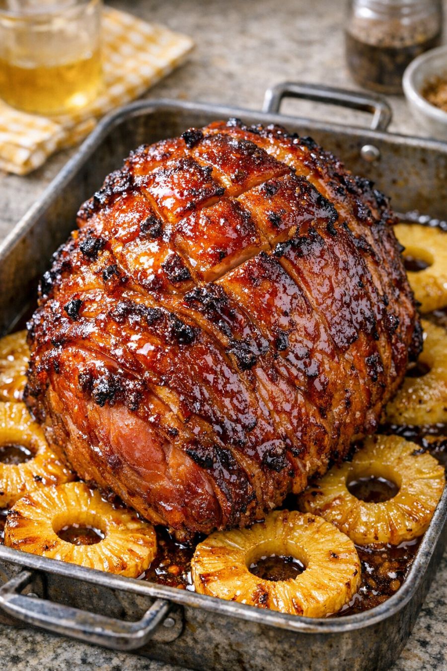 Simple Southern Baked Ham with Sticky Brown Sugar Pineapple Glaze