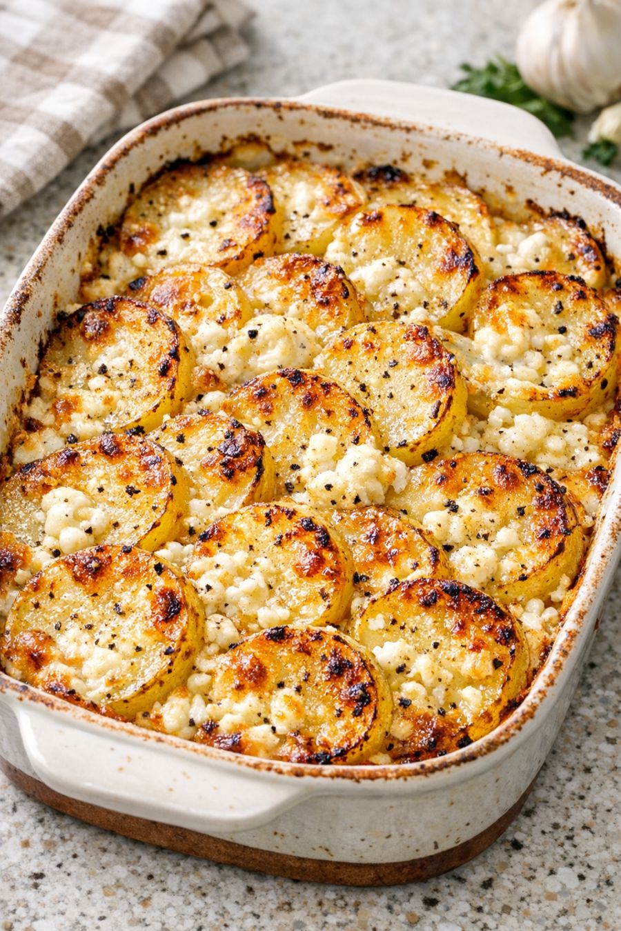 If you’d like a little more golden color on top, slide the uncovered casserole under the broiler for 2–3 minutes at the end of baking, watching closely so it doesn’t scorch. For a slightly tangier flavor, use small-curd cottage cheese or mix in a spoonful of sour cream with the cottage cheese before spreading it over the potatoes (this will nudge it beyond three core ingredients, but it’s a nice Sunday variation). You can also change the texture by slicing the potatoes paper-thin with a mandoline for a more scalloped feel, or a bit thicker for a heartier bite—just adjust baking time as needed until they’re tender. If you’re cooking for two, halve the recipe and use a smaller ceramic dish, checking for doneness a bit earlier. Leftovers reheat well in a low oven, covered, until warmed through; they’re especially good alongside scrambled eggs the next morning, turning one simple bake into two comforting meals.