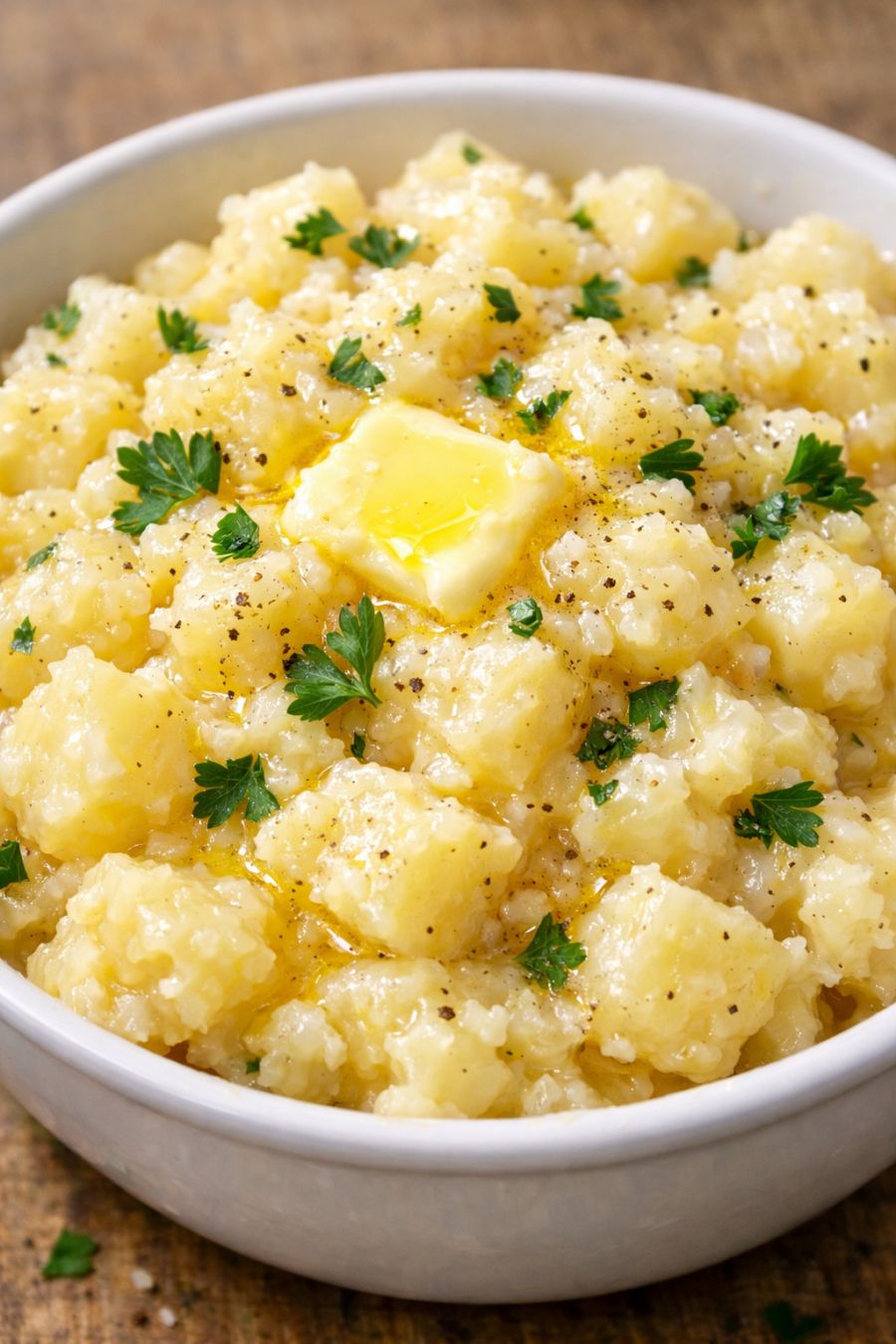 Taste and adjust seasoning with additional salt and pepper if needed. If the potatoes seem thicker than you’d like, stir in a splash more buttermilk, a tablespoon or two at a time, until they’re as loose and creamy as you prefer.