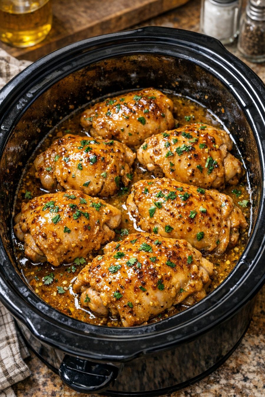 Serve: Spoon the mustard-glazed chicken thighs and plenty of sauce over rice, noodles, or mashed potatoes. Ladle any extra sauce from the slow cooker over the top right before serving.