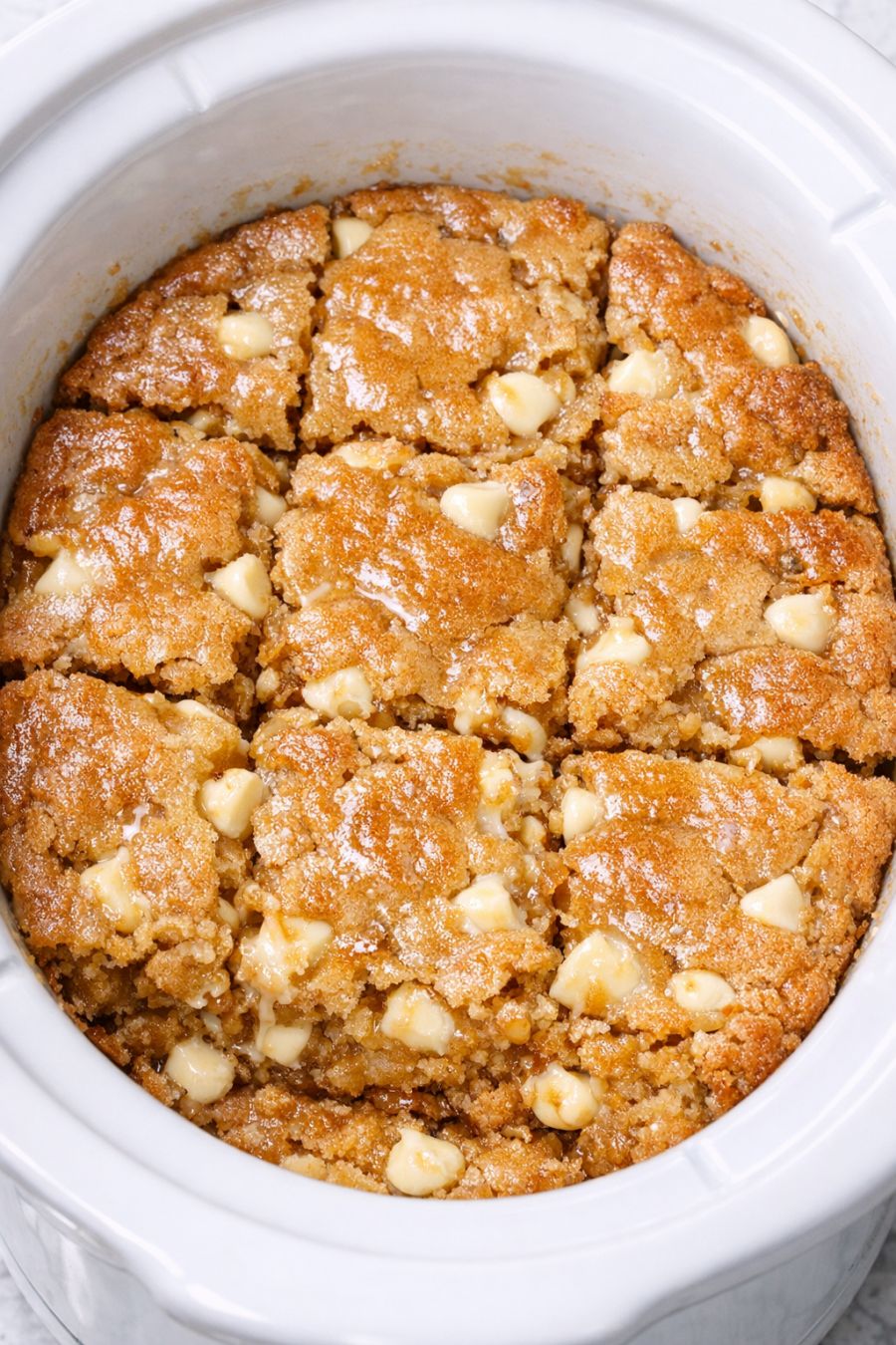 Cool and store leftovers: If you have leftovers, let the slow cooker insert cool completely, then cut the blondies into bars. Store them in an airtight container at room temperature for up to 2 days, or refrigerate for up to 4 days. Rewarm gently in the microwave or a low oven to bring back the gooey texture.