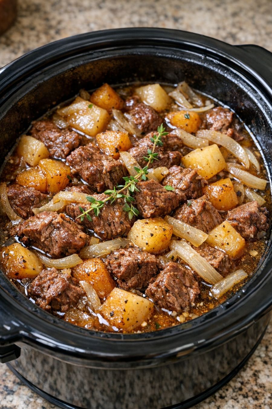 For a slightly richer version that still keeps the spirit of the recipe, you can swap part of the beef broth for a splash of dry red wine, about 1/2 cup, and reduce the broth to 1 cup. If you prefer a thicker, more gravy-like consistency, whisk 1 tablespoon cornstarch with 2 tablespoons cold water and stir it into the slow cooker during the last 20–30 minutes on HIGH. To lean more heavily into Amish-style pantry cooking, you can replace the fresh onion with 1 tablespoon dried minced onion and add 1 teaspoon dried thyme or marjoram for an herbal note. Turnips vary in sharpness; if yours taste particularly peppery, stir in 1 teaspoon sugar at the end of cooking to round out the edges. For a lower-sodium approach, use unsalted broth and hold back some of the salt until the end, seasoning to taste. Leftovers reheat well and can be turned into a next-day hash: chop the beef and turnips a bit smaller, crisp them in a skillet with a little butter or oil, and top with a fried egg.