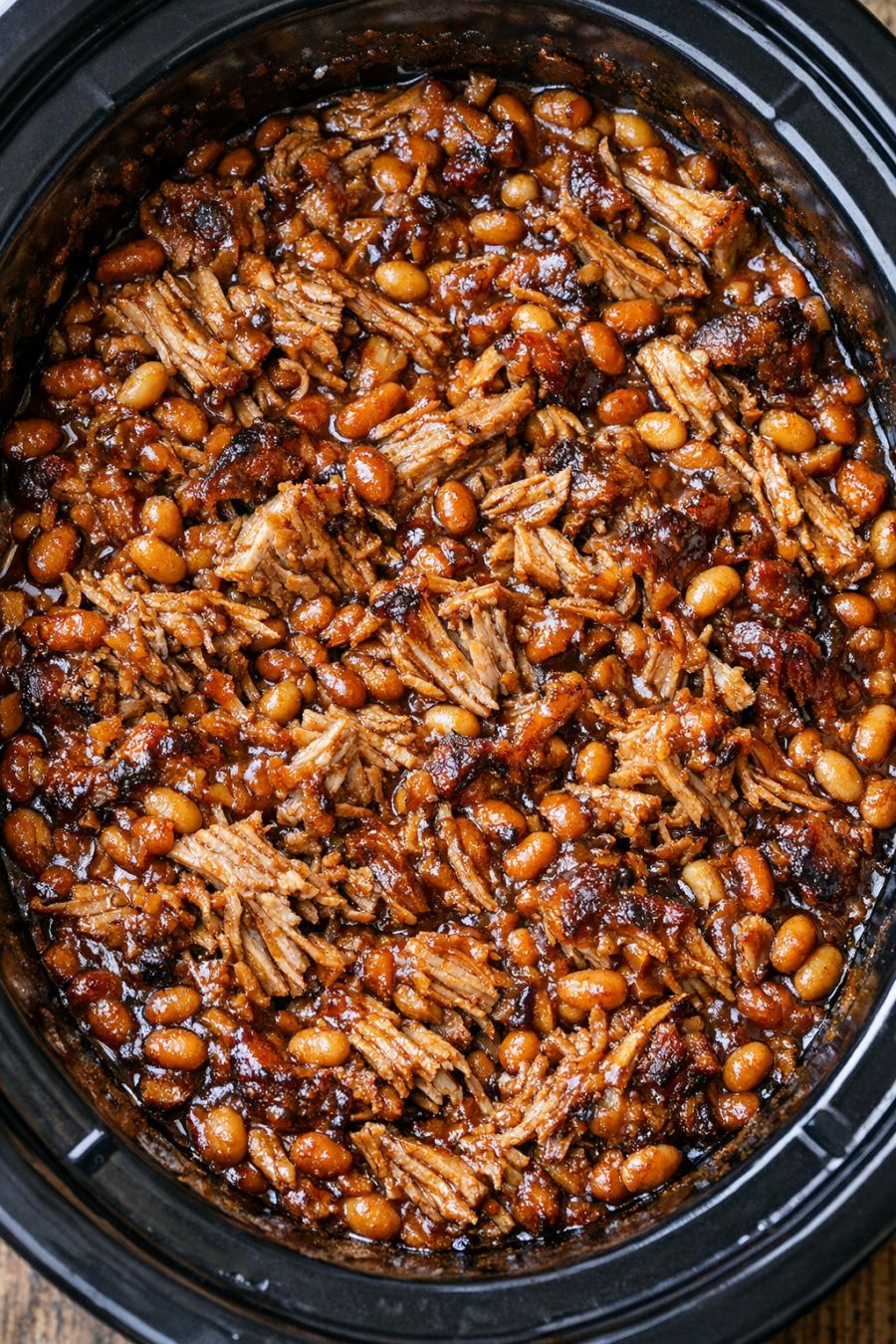 Turn the slow cooker to WARM and let the shredded pork sit in the beans for 10 to 15 minutes to absorb more flavor and allow the sauce to thicken slightly before serving.