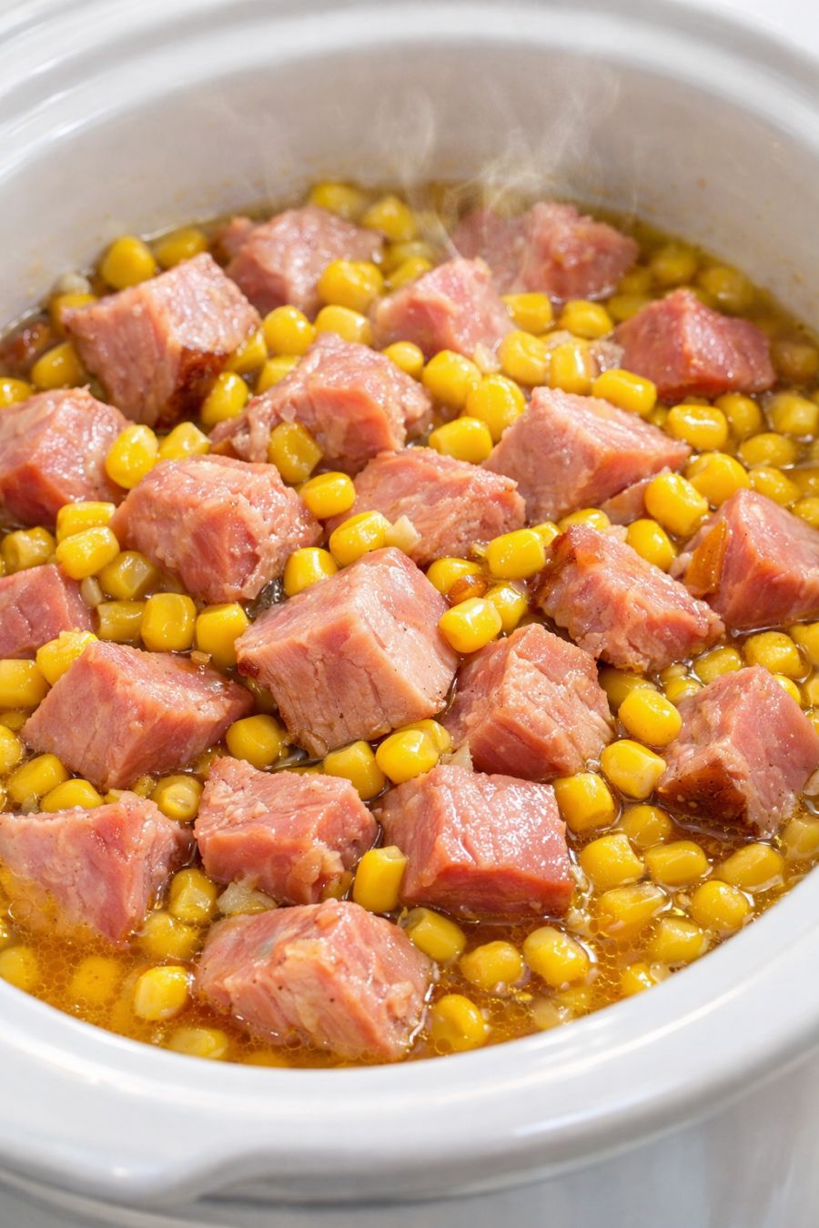 Slow Cooker 4-Ingredient Amish Ham and Corn