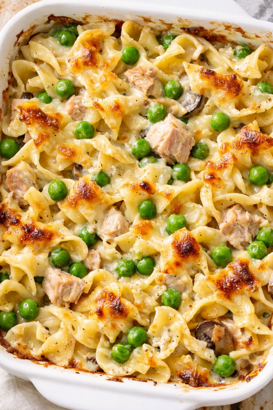 This oven baked 4-ingredient tuna noodle casserole is straight out of my Aunt Linda’s Sunday supper playbook. She’d slide this bubbling dish onto the table and it would be gone before anyone thought about seconds—creamy noodles, tender tuna, and sweet pops of peas with golden-browned edges around the pan. It’s the kind of simple, comforting recipe you can throw together on a busy weeknight or for a casual family get-together, and everyone will swear it must be more complicated than it really is.
