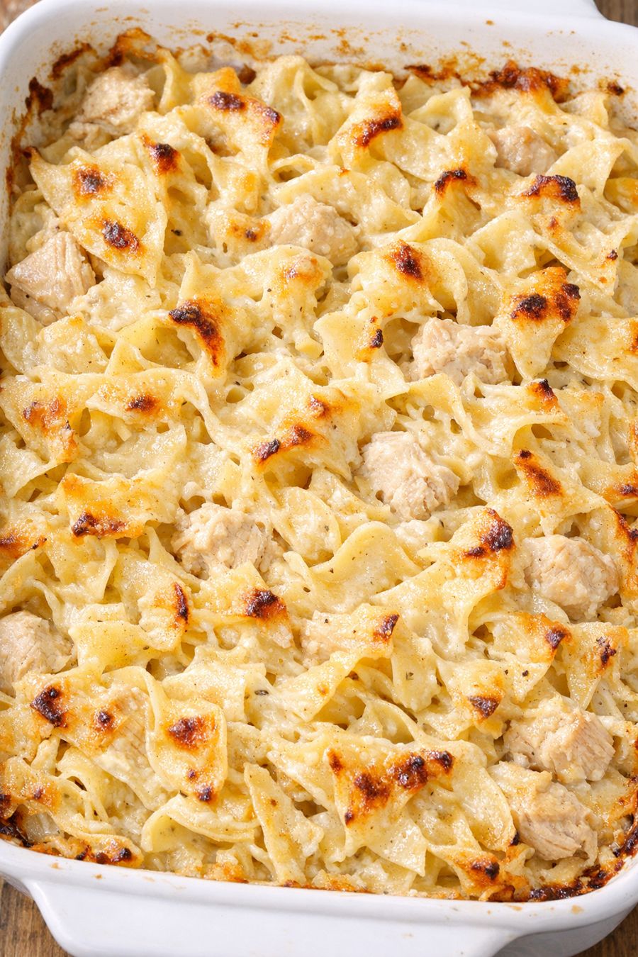 Oven Baked 4-Ingredient Amish Chicken and Noodle Casserole