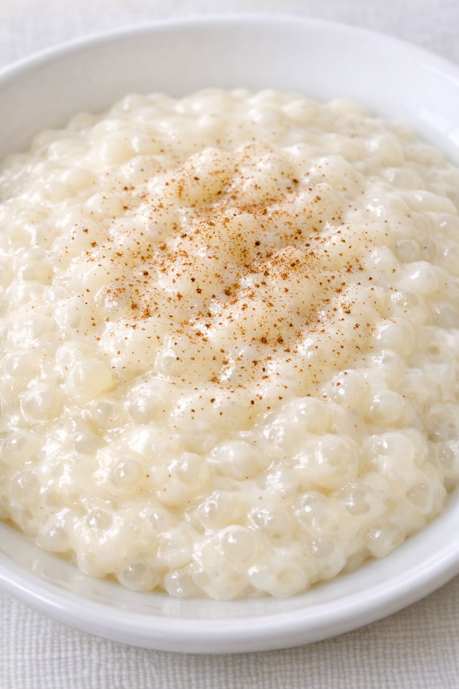 Serve this tapioca pudding warm in shallow white bowls or plates so you can really see the creamy pearls, then add a light dusting of ground nutmeg on top for that old-fashioned touch. It’s lovely on its own, but you can also pair it with fresh berries, sliced bananas, or a spoonful of homemade jam for a bit of color and brightness. A cup of hot coffee or tea for the adults and a glass of cold milk for the kids turns it into a simple but special dessert night. If you chill it first, it makes a wonderful make-ahead dessert for Sunday dinners or potlucks—just give it a quick stir and sprinkle with a little extra nutmeg before serving.