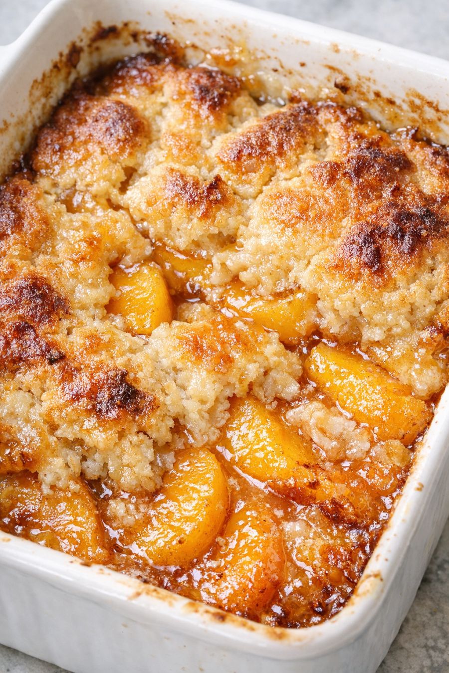 Oven Baked 4-Ingredient Peach Cobbler Bake