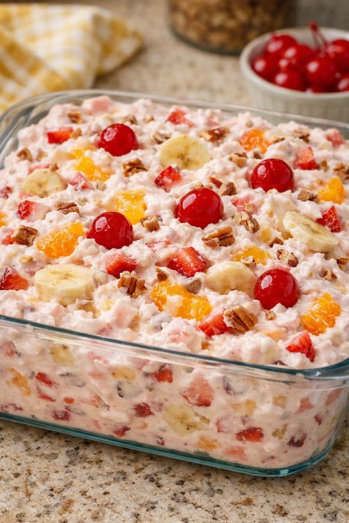 My nana made this frozen fruit salad every single Christmas, and usually again when the weather turned hot and sticky in July. She never measured much of anything, just went by feel and what was in the pantry, so for years I chased that taste from my childhood. This version is the one that finally made me stop in my tracks and say, “That’s it.” It’s creamy from the cream cheese and whipped heavy cream, sweet with bits of pineapple, berries, mandarin oranges, cherries, and bananas, with just enough lemon to keep it bright. The pecans add that little crunch she always said made it “a salad, not a pudding.” It’s simple, make‑ahead, and tastes like it came straight out of a church basement potluck in the Midwest.