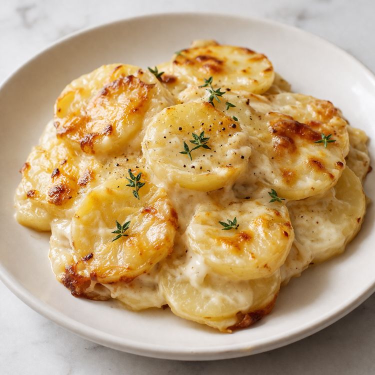 For extra flavor without adding more ingredients, you can swap half of the sharp cheddar for a smoky cheddar or white cheddar—it still counts as one cheese ingredient but changes the vibe. If you prefer a slightly lighter version, use half-and-half instead of heavy cream, just know the sauce will be a bit less thick. Add a little cracked black pepper or paprika on top before cooking for a subtle kick and color. To make this more of a complete meal, stir in leftover diced ham or cooked crumbled bacon between the potato layers (this technically adds an ingredient, but it’s great for using up fridge odds and ends). If your slow cooker tends to get hot spots, rotate the crock halfway through cooking so the potatoes cook evenly. For prep-ahead ease on busy days, you can peel and slice the potatoes in the morning, keep them submerged in cold water in the fridge to prevent browning, then drain and pat dry before layering in the slow cooker when you’re ready to start cooking.