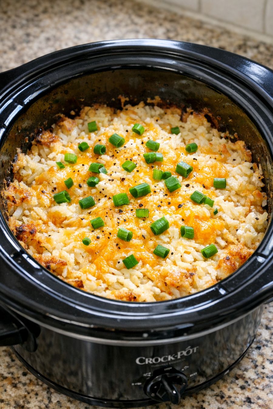 Cover the slow cooker with the lid and cook on LOW for 4–5 hours or on HIGH for 2–3 hours, until the potatoes are tender, hot all the way through, and the edges are bubbly.