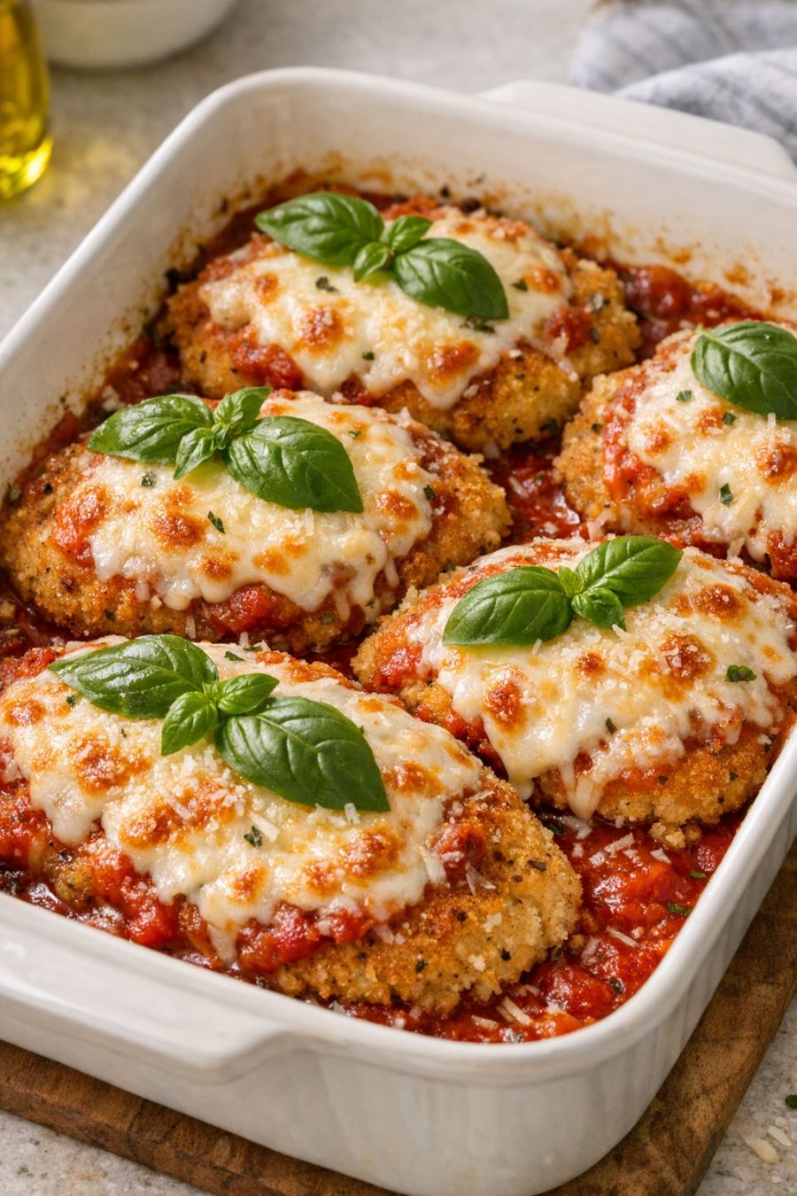 To make this a little heartier, you can tuck a handful of frozen vegetables (like peas, mixed veggies, or spinach) around the patties before adding the sauce—no need to thaw them first. If you prefer a creamier vibe, swap half of the marinara for jarred Alfredo sauce for a pink, ultra-comforting bake. For extra flavor, add a pinch of red pepper flakes with the Italian seasoning for a mild kick. You can also turn this into a sub-style meal by baking as directed, then sliding each cheesy patty into toasted hoagie rolls and spooning some of the extra sauce over top. If you’re cooking for two, halve the recipe and use a smaller deep baking dish, or bake the full batch and slice leftover patties to layer over salads or reheat on top of garlic toast for an easy next-day lunch. To keep things lighter, use reduced-fat mozzarella and Parmesan and pair with roasted vegetables instead of starch.
