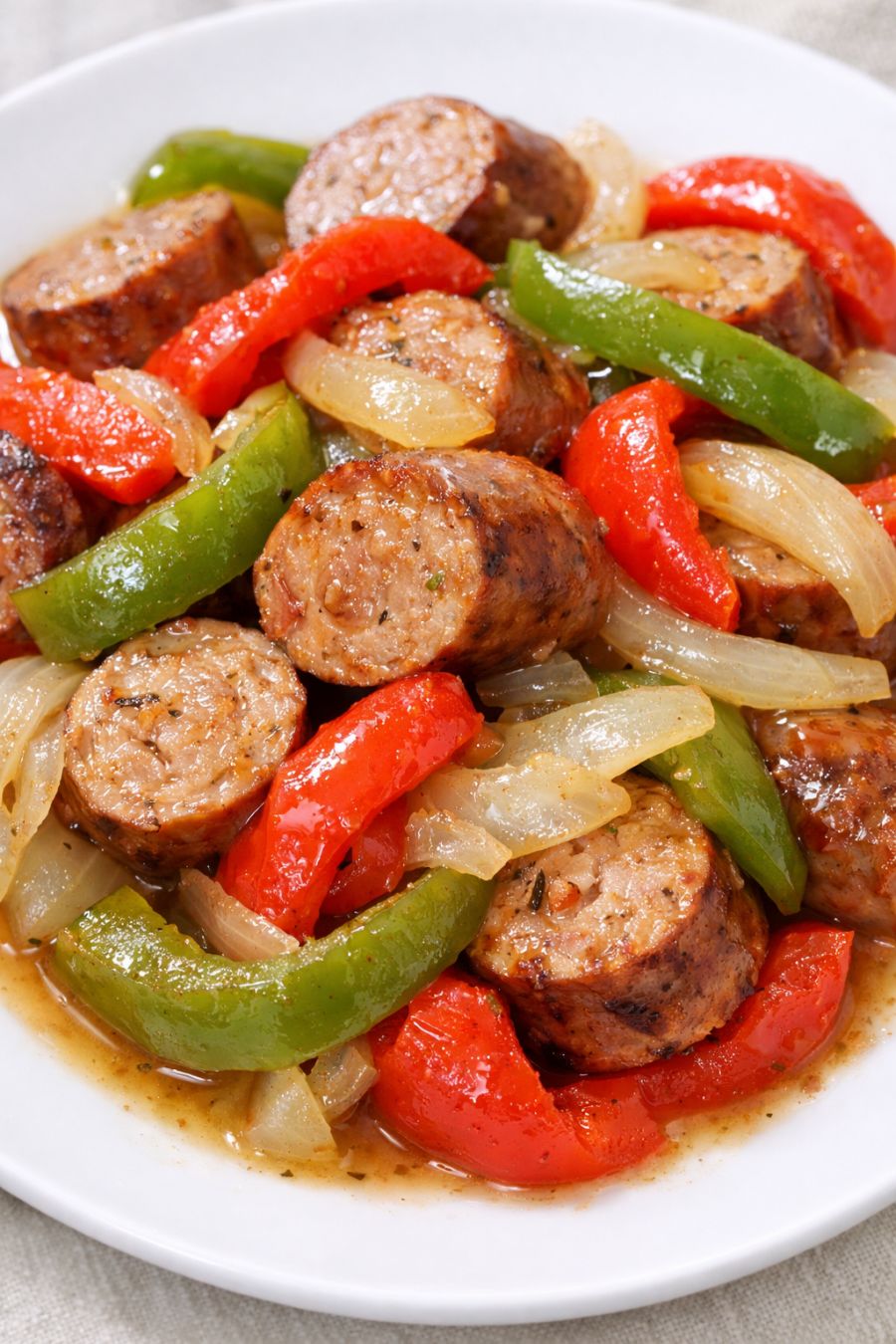 Serve the sausage and peppers piled over toasted hoagie rolls for classic sandwiches, or spoon them over cooked white rice, buttered egg noodles, or creamy mashed potatoes to soak up the flavorful juices. For a lighter option, serve with a side salad or roasted green beans. Leftovers reheat well and make an easy meal prep lunch—just pack the sausage, peppers, and onions with some cooked pasta or rice in containers for grab-and-go meals.