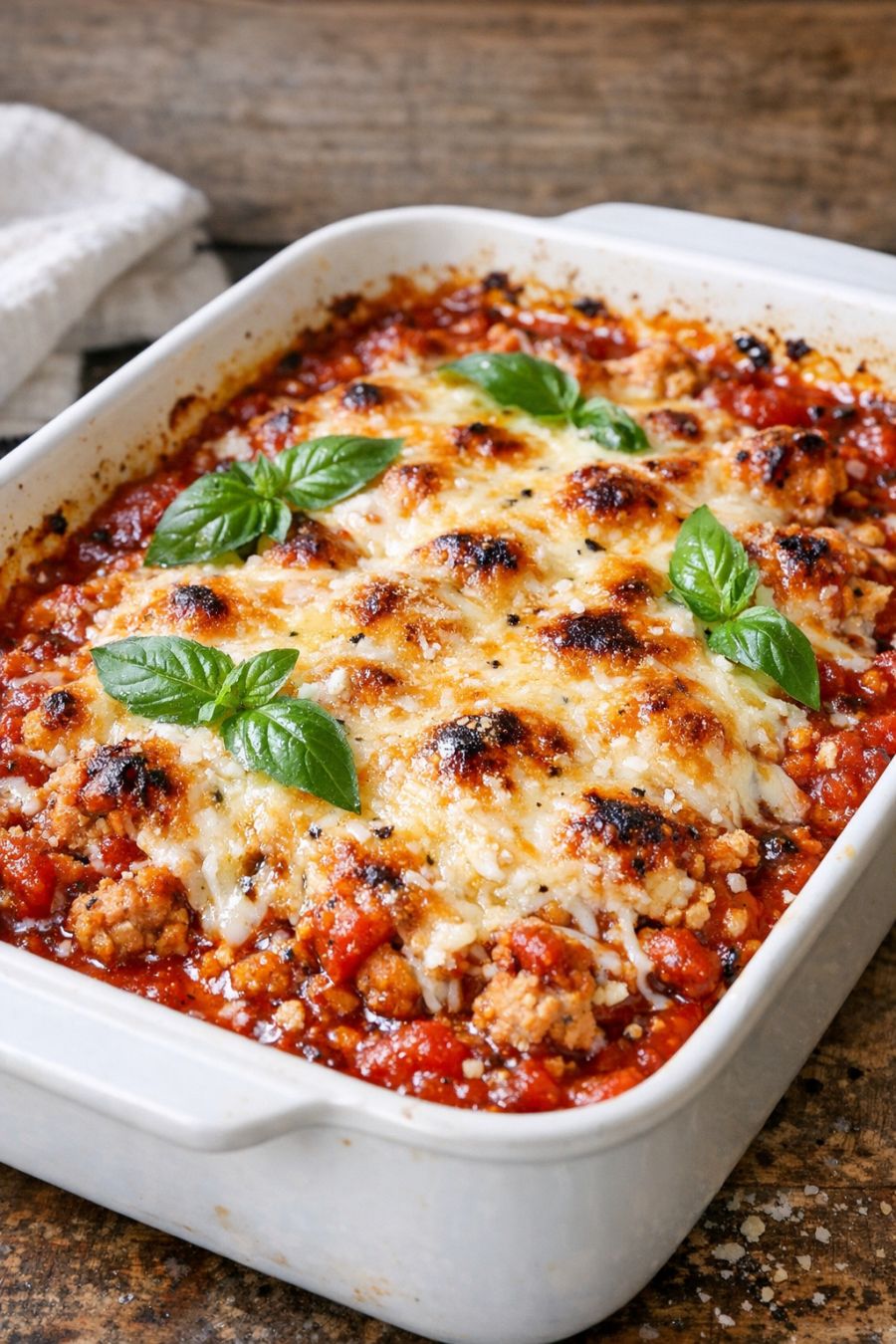 Serve this baked ground chicken with a crisp green salad dressed in a simple vinaigrette, or classic Midwestern-style with buttered egg noodles or mashed potatoes to soak up the savory juices. Steamed green beans, roasted broccoli, or a pan of quickly sautéed zucchini all pair nicely. A warm loaf of crusty bread or dinner rolls is great for scooping up any cheesy bits from the casserole dish, and if you’d like a beverage pairing, a light lager or a chilled glass of unoaked white wine works well with the mild, comforting flavors.