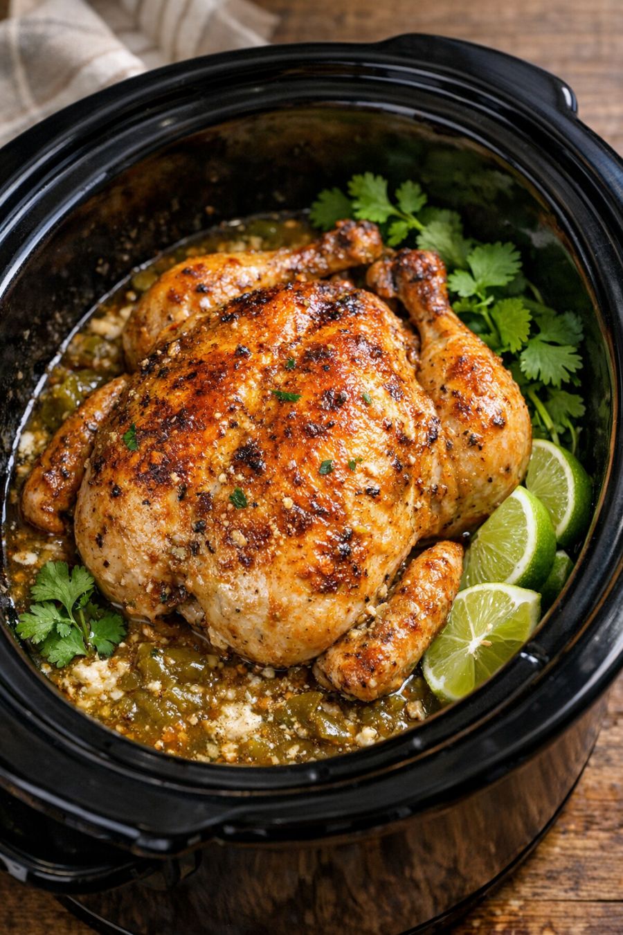This 3-ingredient slow cooker weekend chicken is my go-to when I’m juggling work, errands, and still want something that tastes like I fussed over it all day. You literally dump a whole raw chicken into the slow cooker with two secret helpers—ranch dressing mix and a jar of salsa verde—and walk away. Hours later, you’ve got fall-apart tender, crazy-flavorful chicken that tastes like you marinated, seared, and babysat it… but you didn’t. It’s perfect for lazy Saturdays, game days, or whenever you want a big batch of protein with almost zero effort.