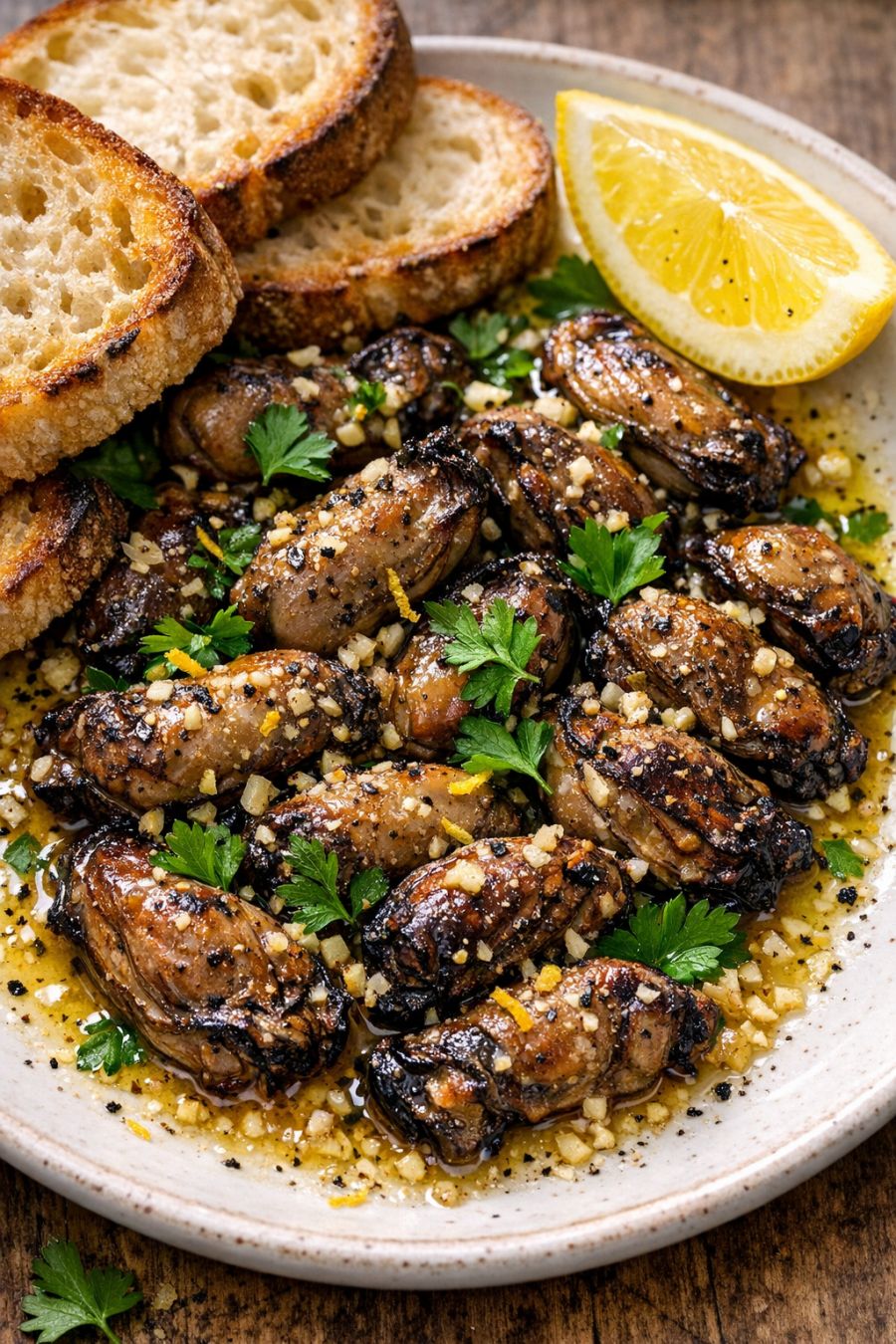 Serve these slow cooker smoked oysters warm in their buttery broth with toasted baguette slices or sturdy crackers to soak up the juices. They’re also excellent spooned over creamy polenta, mashed potatoes, or buttered egg noodles for a more substantial meal. A crisp green salad with a lemony vinaigrette or simply steamed asparagus balances the richness nicely, and a dry white wine or light beer pairs well with the smoky, briny flavors.