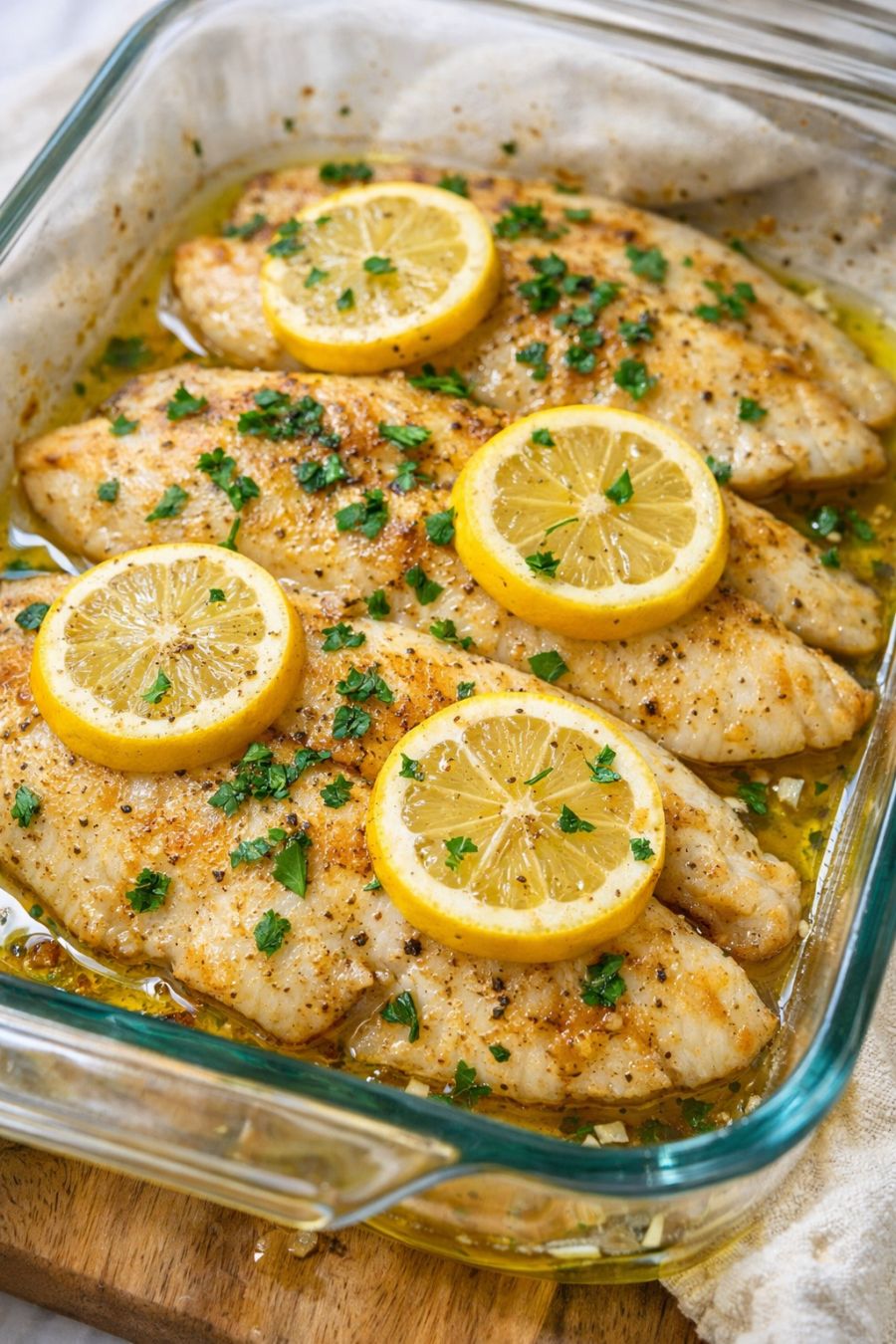 Preheat your oven to 400°F (200°C). Grab an oven-safe glass casserole dish large enough to hold the tilapia fillets in a single layer.