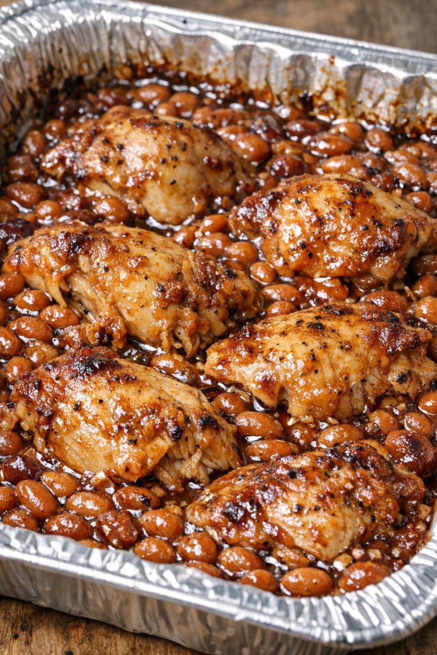 Cover the tray tightly with aluminum foil. Bake for 35 minutes, allowing the chicken to cook through and the flavors to meld into the beans.