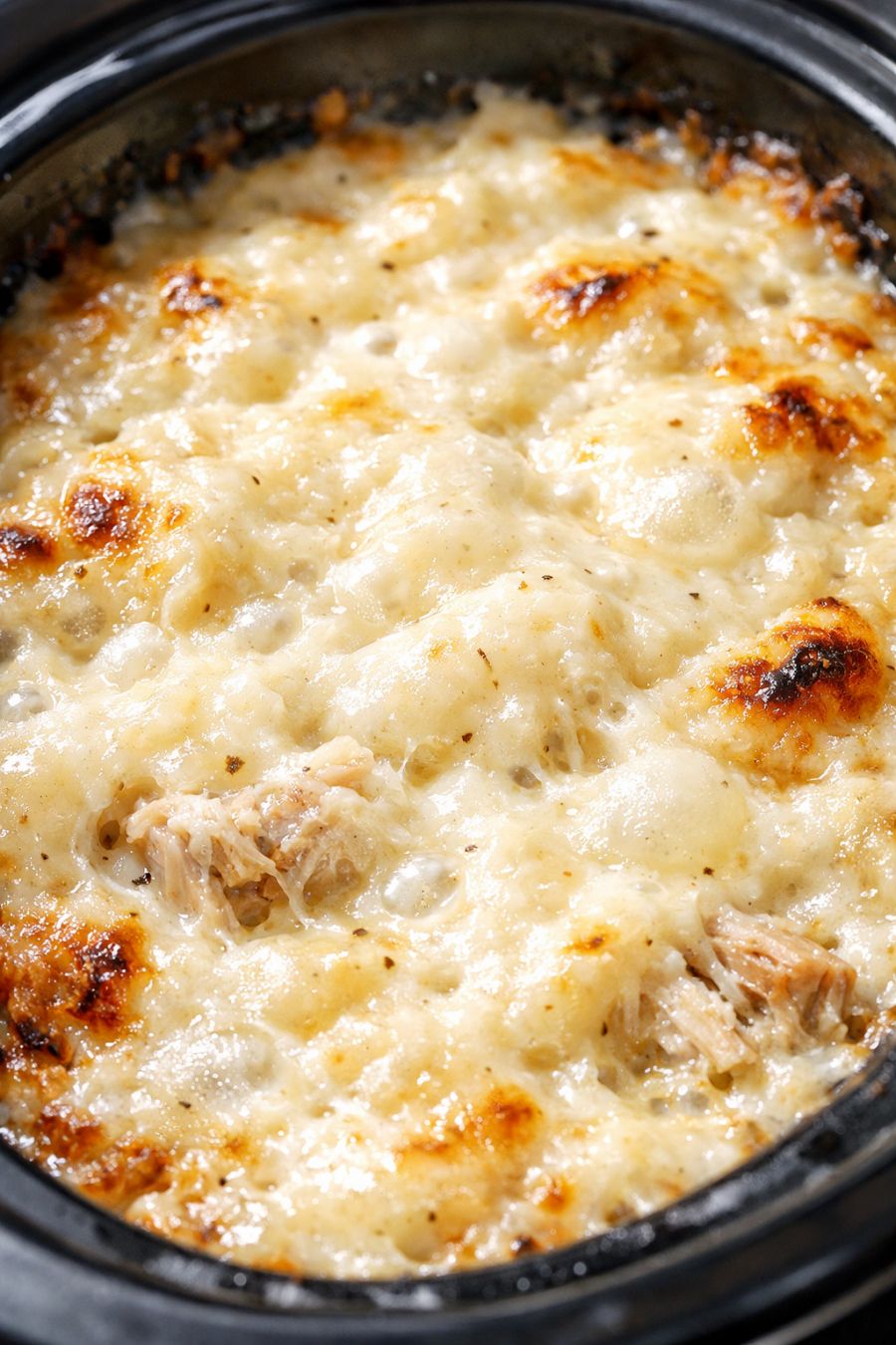 Cover the slow cooker with the lid and cook on LOW for 5 to 6 hours, or on HIGH for 3 to 4 hours, until the potatoes are very tender when pierced with a fork and the mixture is bubbling around the edges.