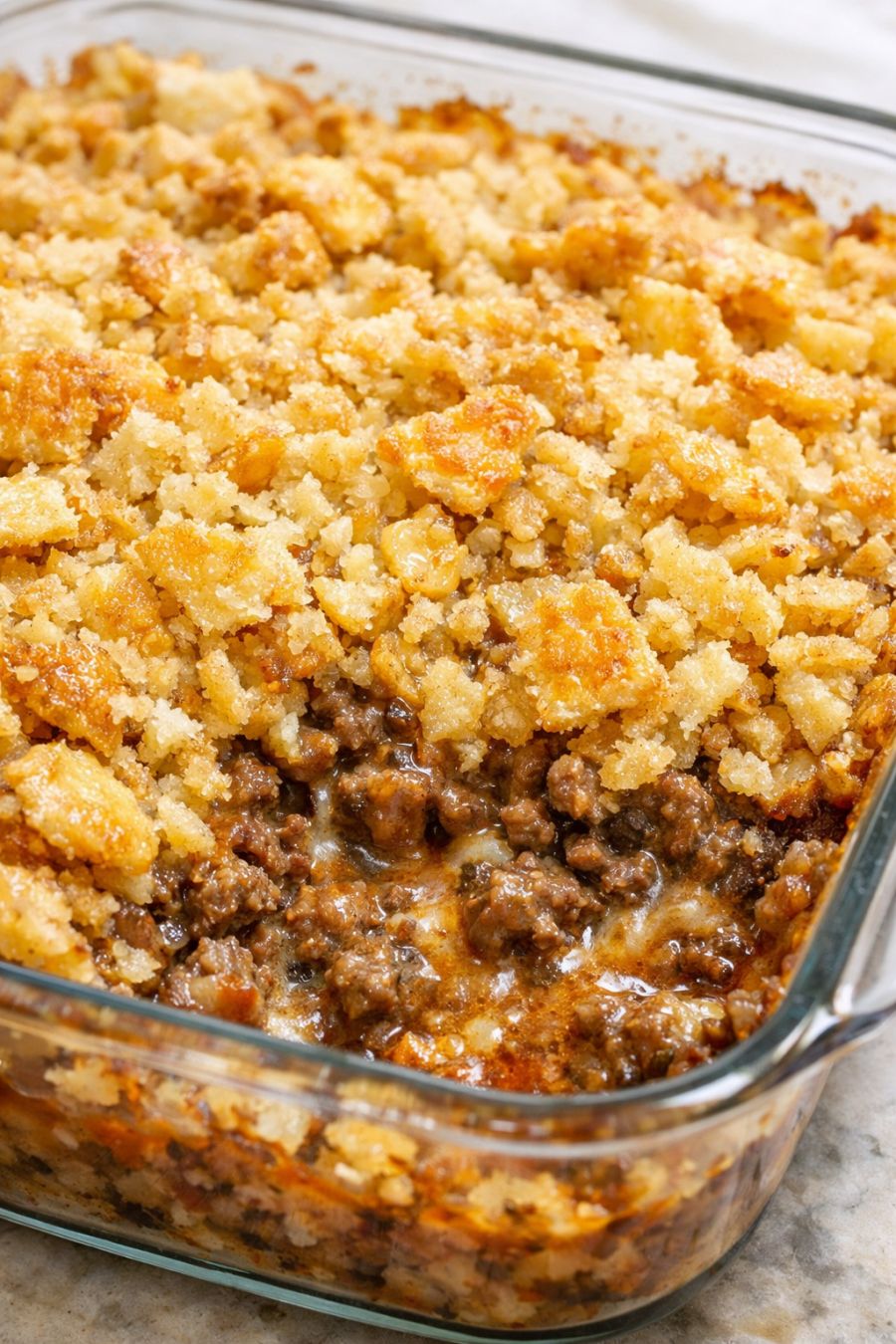 You can easily make this casserole your own while keeping the spirit of that simple 4-ingredient Amish comfort. If you like a little extra richness, use half-and-half instead of milk, or a creamier condensed soup such as cream of chicken. For a slightly different flavor, cream of celery or cream of onion soup both work nicely. If you don’t have buttery round crackers, plain saltine crackers or even crushed potato chips can stand in; just be mindful of added salt if your substitute is very salty. For a leaner version, use 90% lean ground beef and drain it very well, or swap in ground turkey, keeping in mind that turkey can dry out more easily, so don’t overbake. To stretch the casserole for a bigger crowd, you can serve it over cooked rice, egg noodles, or mashed potatoes without changing the base recipe. Food safety tips: Always cook ground beef until it is no longer pink and reaches an internal temperature of 160°F (71°C). Drain off excess grease carefully to avoid splatters and burns. Do not leave the casserole out at room temperature for more than 2 hours; refrigerate leftovers promptly in shallow containers and use within 3–4 days, reheating until hot and steaming throughout before serving.