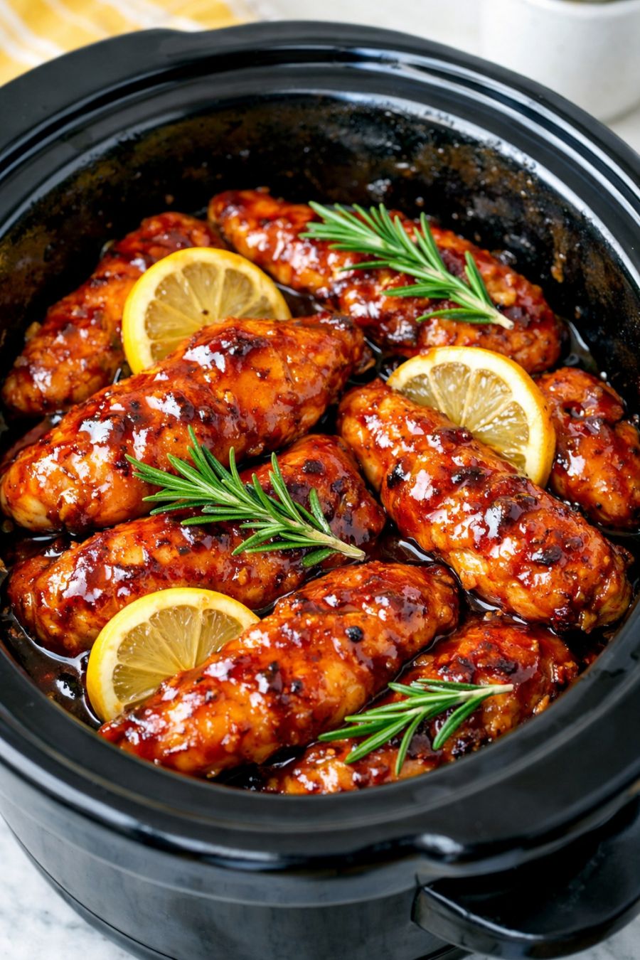 For picky eaters, choose a milder, sweeter barbecue sauce and go a little lighter on the Worcestershire if they’re sensitive to strong flavors. You can also stir in a tablespoon or two of ketchup to make the sauce extra kid-friendly and familiar. If your family likes a little heat, add 1/4 teaspoon crushed red pepper flakes or a few dashes of hot sauce to the sauce mixture before pouring it over the chicken. For a slightly tangier version, stir in 1 to 2 tablespoons of apple cider vinegar from the pantry. To stretch the meal, add a drained can of chickpeas or white beans in the last hour of cooking. This recipe works with boneless, skinless chicken breasts or thighs as well—just cut them into tender-sized strips so they cook at a similar rate. Food safety tips: Always start with raw chicken that has been kept refrigerated and not left out at room temperature for more than 2 hours (or 1 hour if it’s very warm in your kitchen). Place the raw chicken directly into the slow cooker, then wash your hands, cutting boards, and any utensils that touched the raw chicken with hot, soapy water. Make sure the chicken reaches an internal temperature of 165°F (74°C) before serving; if you’re unsure, use an instant-read thermometer to check the thickest piece. Refrigerate leftovers within 2 hours in a shallow container, and use within 3 to 4 days, reheating until hot and steamy before serving. If you’d like to freeze leftovers, cool them completely, then freeze for up to 2 to 3 months in an airtight container.