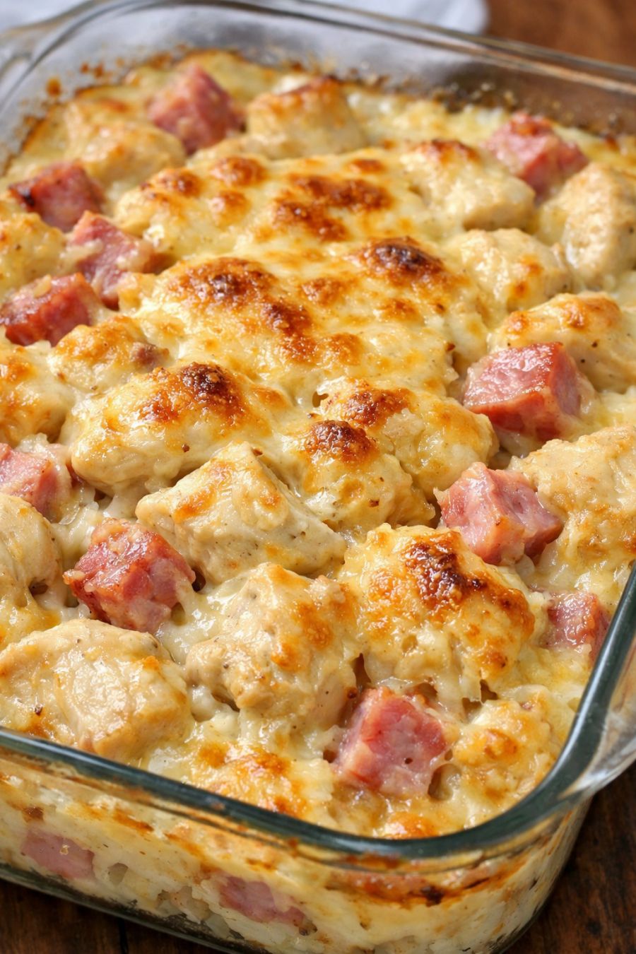 Oven Baked 4-Ingredient Amish Chicken and Ham Casserole