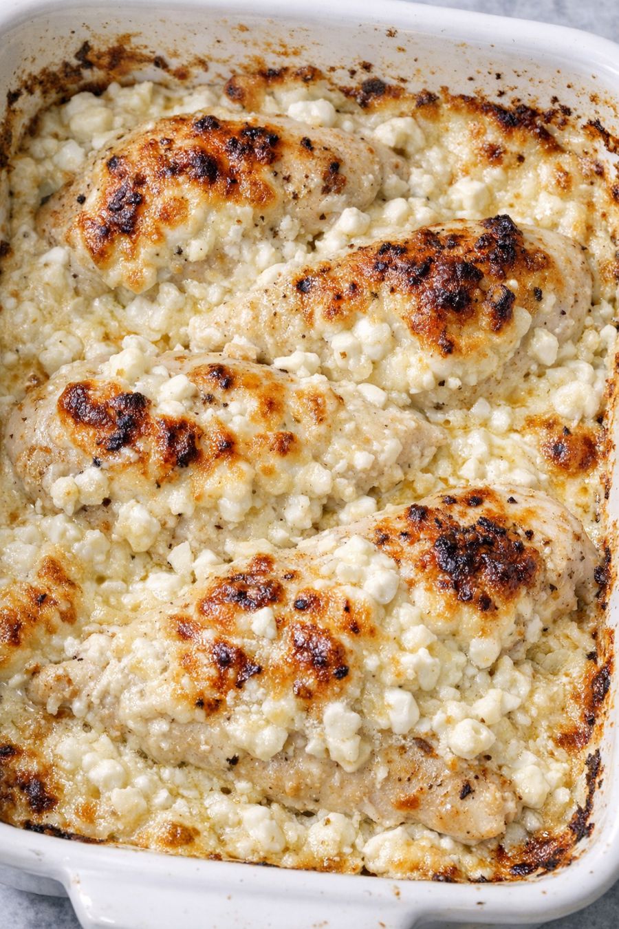 Carefully remove the foil (watch out for steam), then return the dish to the oven and bake uncovered for another 15–20 minutes, or until the cheese is melted, the edges are lightly browned, and the chicken reaches an internal temperature of 165°F (74°C) in the thickest part.
