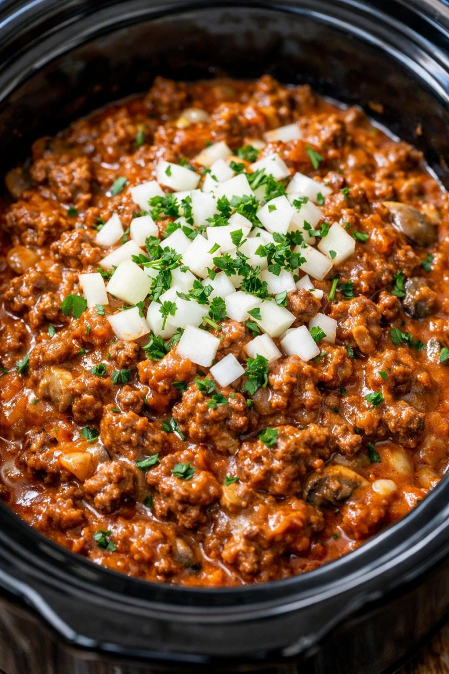 Cover the slow cooker with the lid. Cook on LOW for 4 to 5 hours, or on HIGH for 2 to 3 hours, until the mixture is hot and bubbling around the edges and the onions are very soft. Since the beef is already fully cooked, you’re primarily heating it through and allowing the flavors to meld.