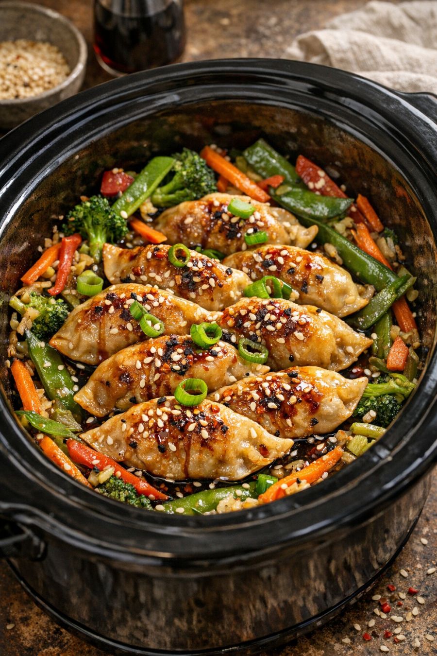 Cover again and cook on LOW for an additional 30 to 45 minutes, or until the vegetables are just tender but still bright and the potstickers are very soft and hot in the center.