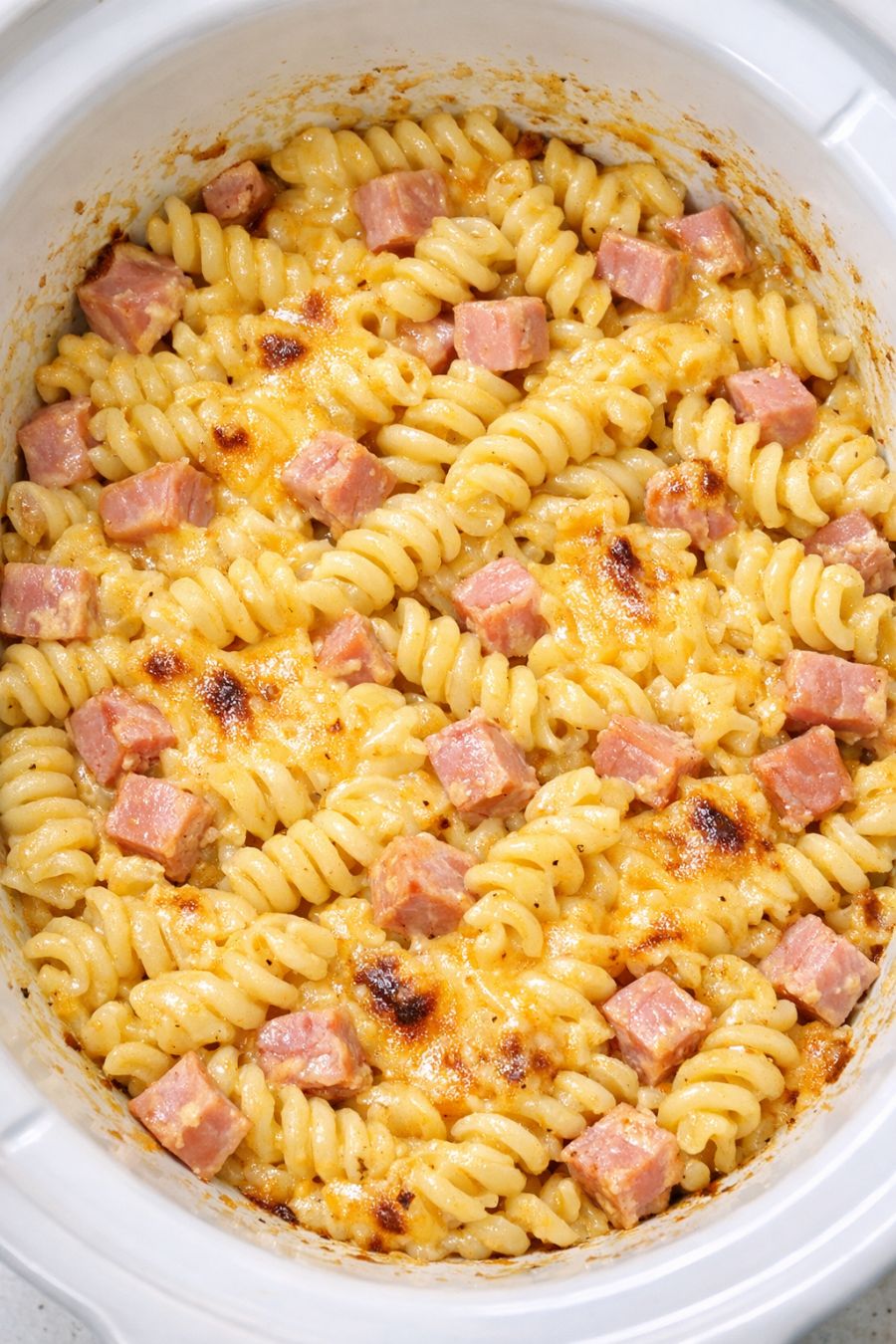 Slow Cooker 3-Ingredient Ham and Cheese Pasta
