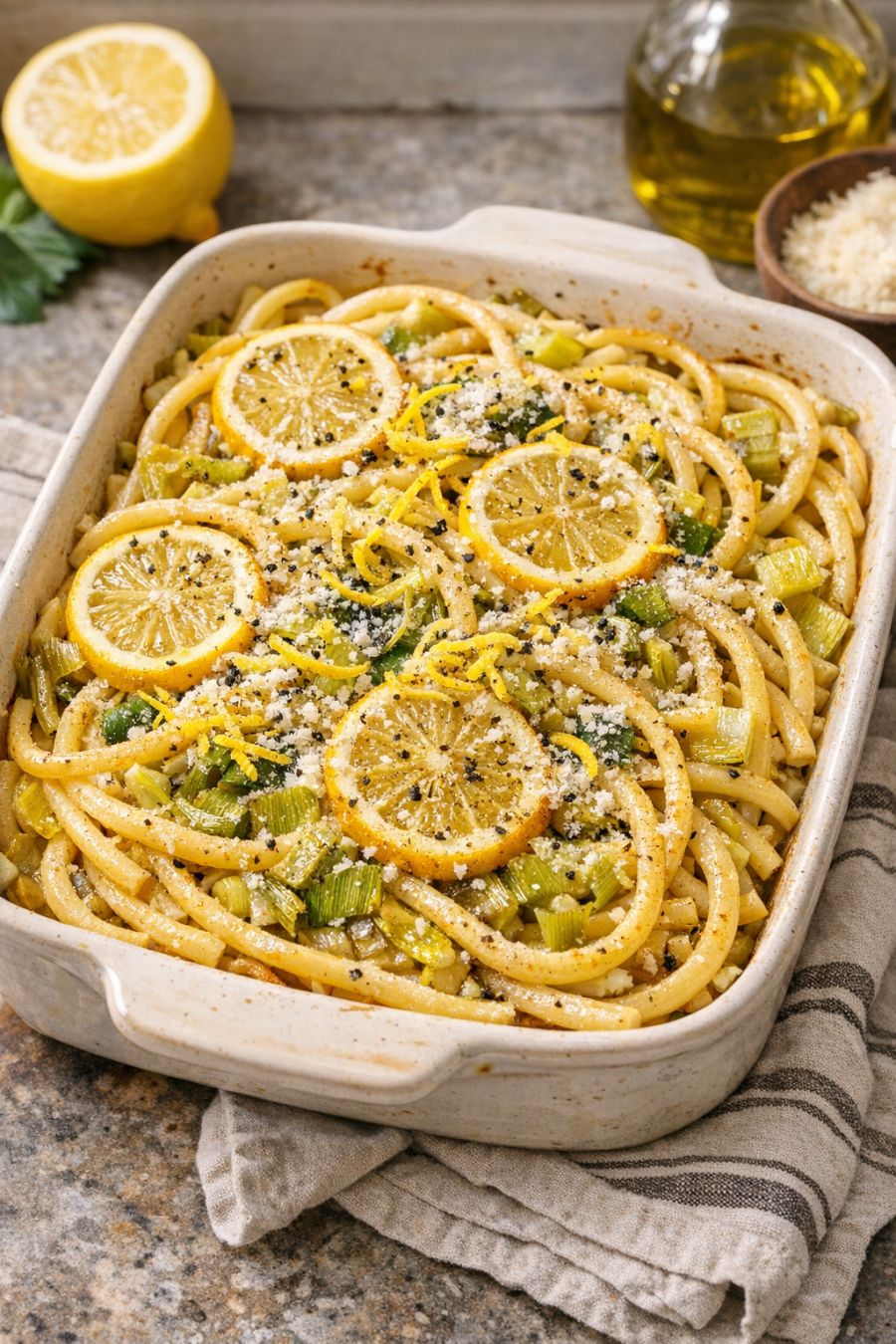 Oven-Baked 4-Ingredient Lemon Leek Bucatini