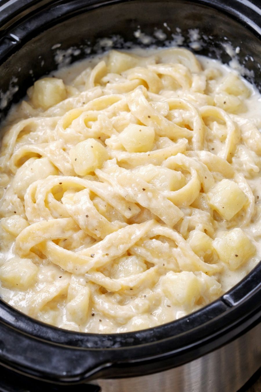 Slow Cooker 3-Ingredient Potato Soup Noodles