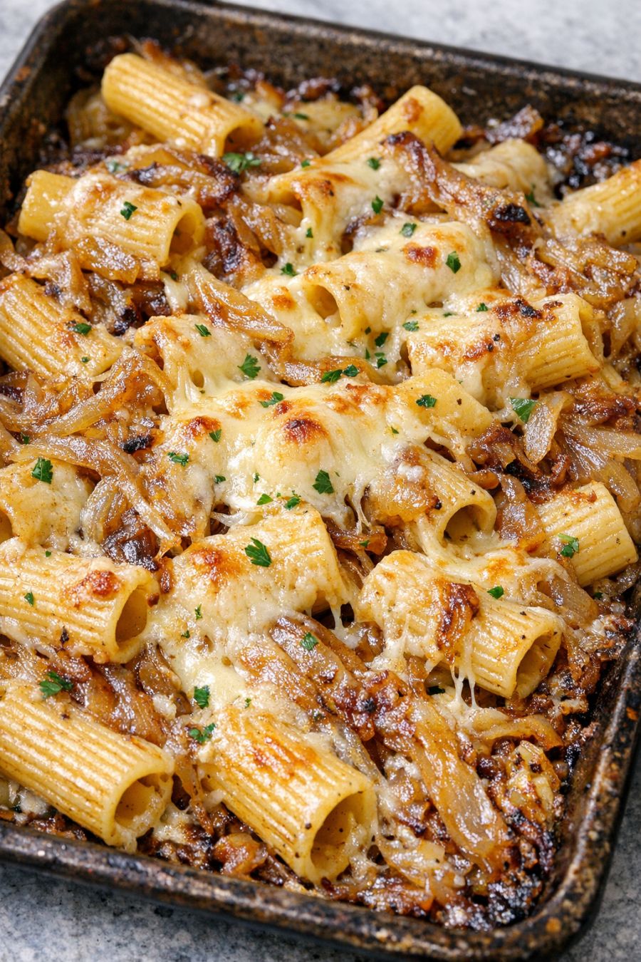 Oven Baked 4-Ingredient Sheet Pan French Onion Pasta