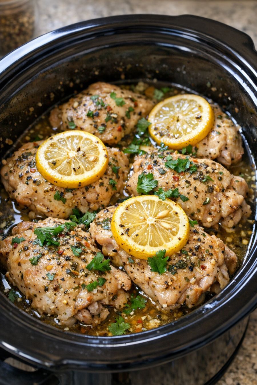 Serve these tender, lemony-herb chicken thighs over buttered egg noodles, mashed potatoes, or a bed of rice to soak up all those springy juices. A simple side of steamed green beans, peas, or a tossed salad with fresh cucumbers and radishes keeps that light, fresh feeling on the plate. Warm dinner rolls or a slice of crusty bread are perfect for sopping up the sauce, and if you’re feeding a crowd, a pan of roasted carrots or asparagus fits right in with the bright, garden-forward flavors.