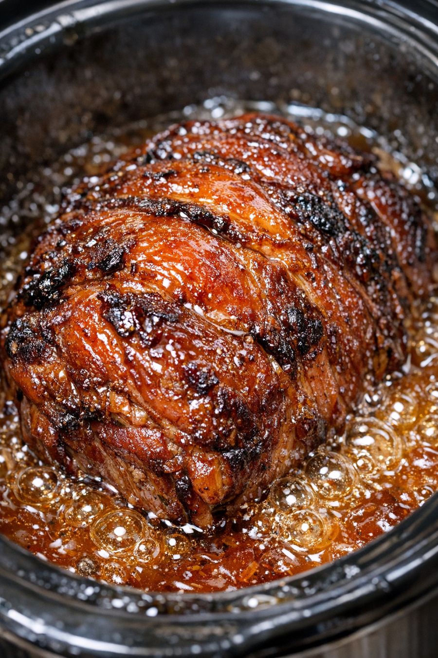 Once done, turn off the slow cooker and let the pudding rest, covered, for 10 to 15 minutes. This brief rest allows the bubbling sauce to thicken into a glossy, gelatinous glaze while the custard finishes setting.