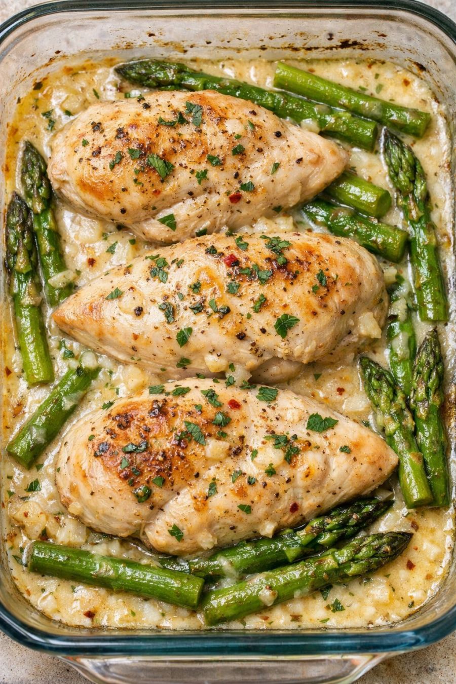 Serve the chicken breasts with plenty of asparagus and spoonfuls of the creamy sauce over each portion. Bring the glass dish straight to the table for a homey, family-style presentation.