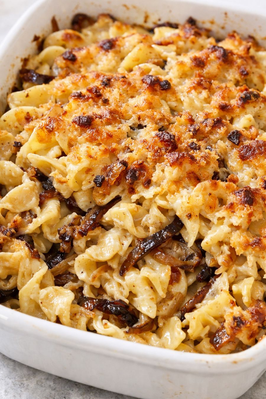 Oven Baked 4-Ingredient Caramelized Onion and Egg Noodle Bake