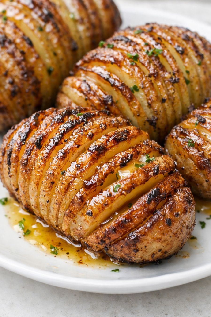 Serve these hasselback potatoes hot, right off the slow cooker, with a spoonful of the buttery juices from the bottom drizzled over the top. They’re perfect alongside roast chicken, meatloaf, pork chops, or a simple pan-fried steak. Add a green vegetable—like steamed green beans, roasted Brussels sprouts, or a crisp salad—to balance the richness. For a cozy supper, pair them with a bowl of chili or beef stew and let everyone scoop a potato onto their plate to soak up the extra sauce.