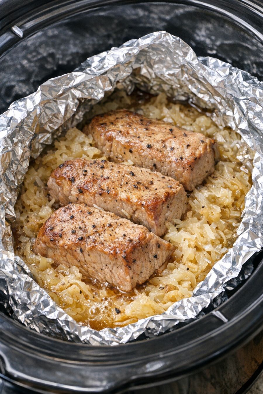 Slow Cooker Foil-Wrapped Pork and Sauerkraut