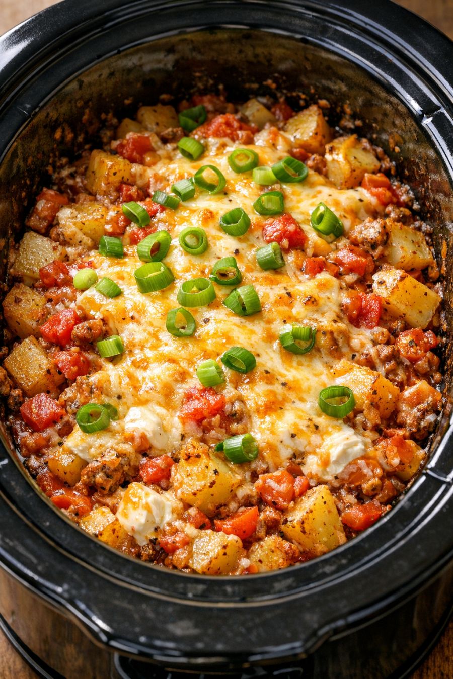 Once the potatoes are tender, sprinkle the remaining 1 cup shredded cheese evenly over the top. Cover again and cook on LOW (or keep on WARM) for about 10–15 minutes, just until the cheese is melted.