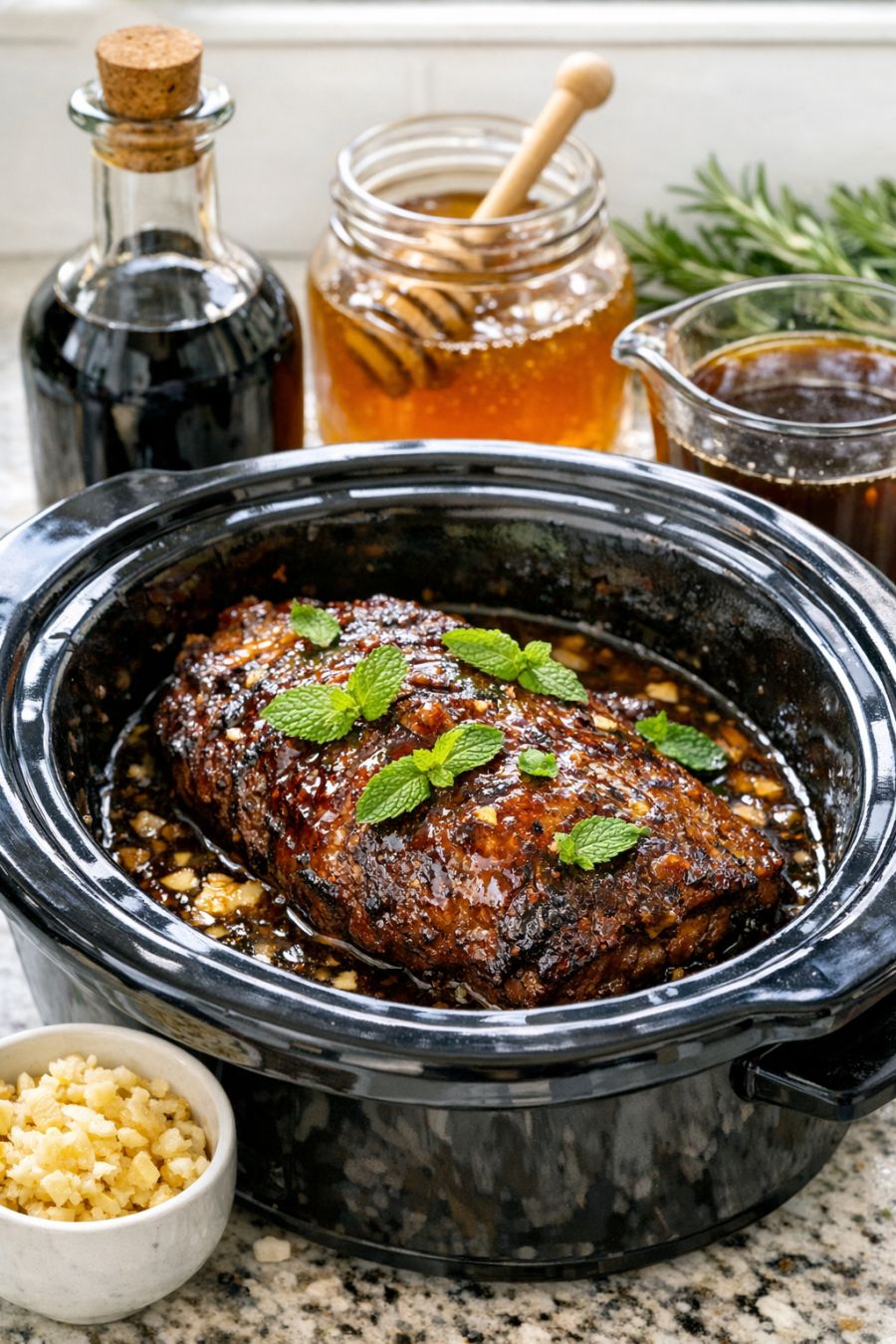 This slow cooker honey balsamic spring beef is one of those set-it-and-forget-it meals that tastes like you fussed all afternoon. You simply whisk together one fragrant mixture of raw honey, balsamic vinegar, beef stock, fresh mint, and crushed garlic, then pour it over a whole beef picanha in the slow cooker. Picanha, a prized cut in Brazilian cooking, has a generous fat cap that slowly bastes the meat as it cooks, giving you slices that are rich, tender, and deeply flavored. The balsamic and honey bring gentle sweetness and tang, while the mint keeps the whole dish feeling bright and springy rather than heavy. It’s a comforting, repeatable meal that fits weeknights but feels worthy of company.